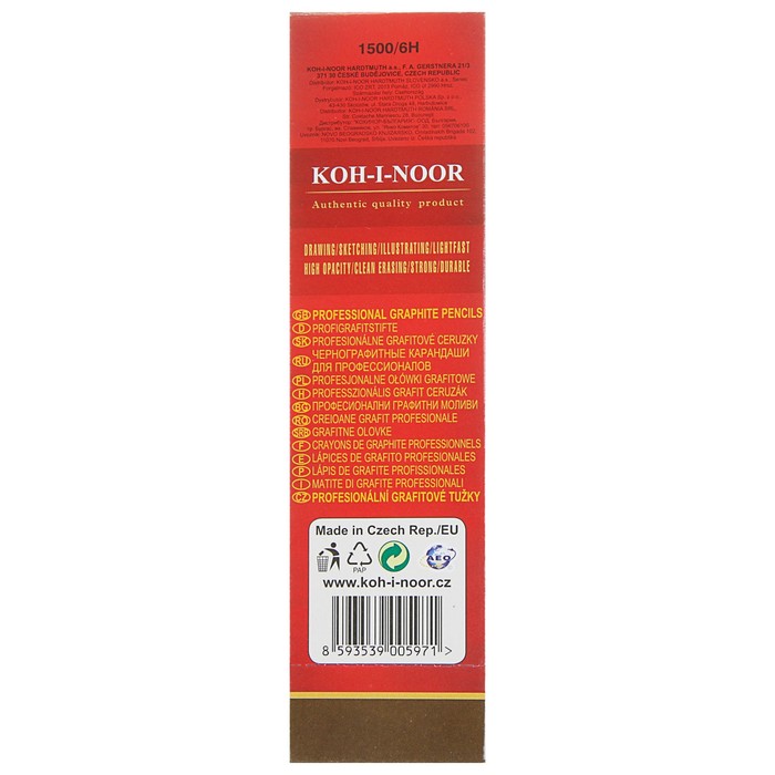 Карандаш чернографитный Koh-I-Noor 1500 6H, профессиональный, лакированный корпус — Характеристики