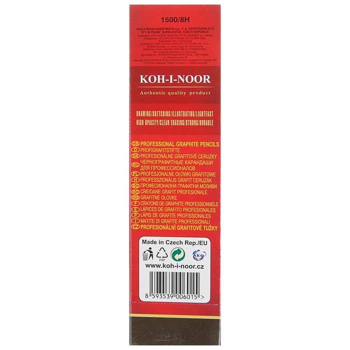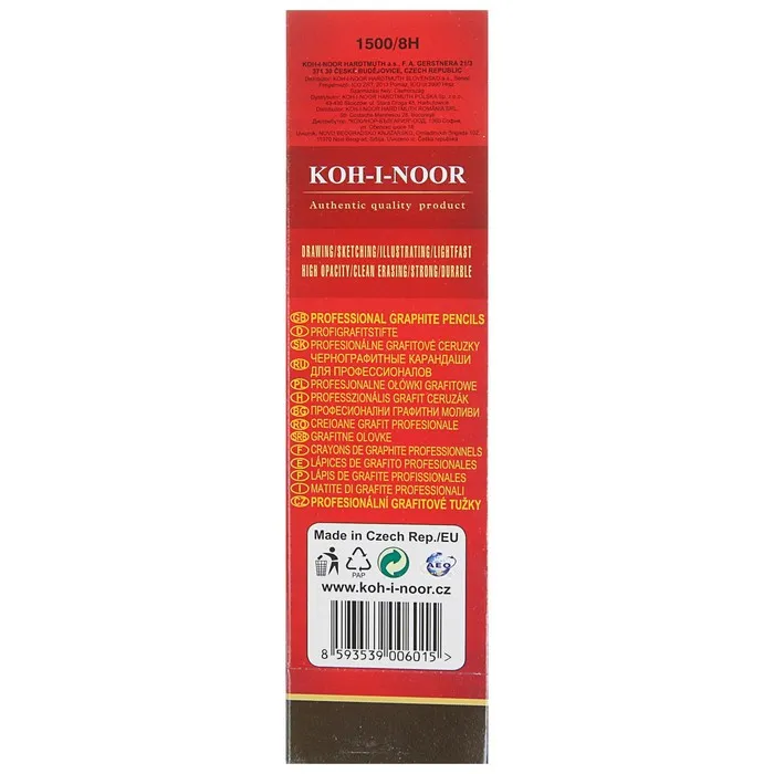 Карандаш чернографитный Koh-I-Noor 1500 8H, профессиональный, лакированный корпус — Характеристики