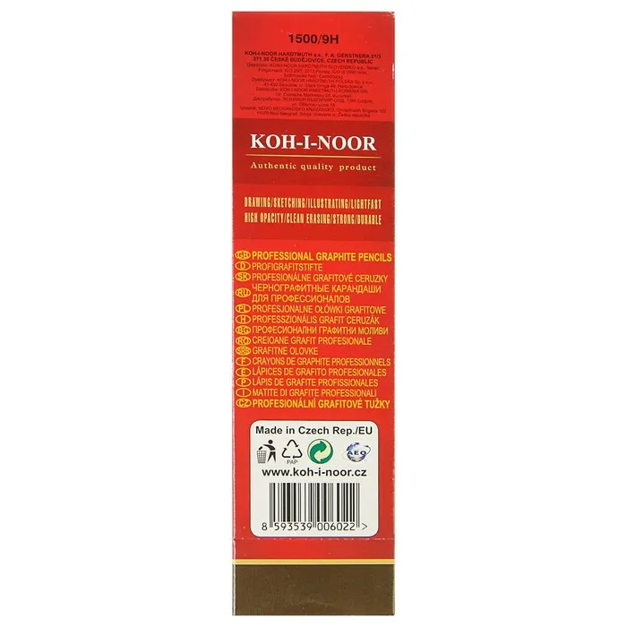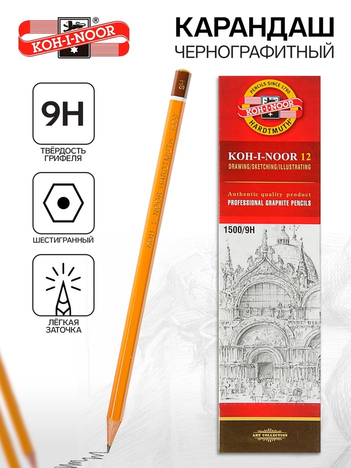 Карандаш чернографитный Koh-I-Noor 1500 9H, профессиональный, лакированный корпус — Характеристики