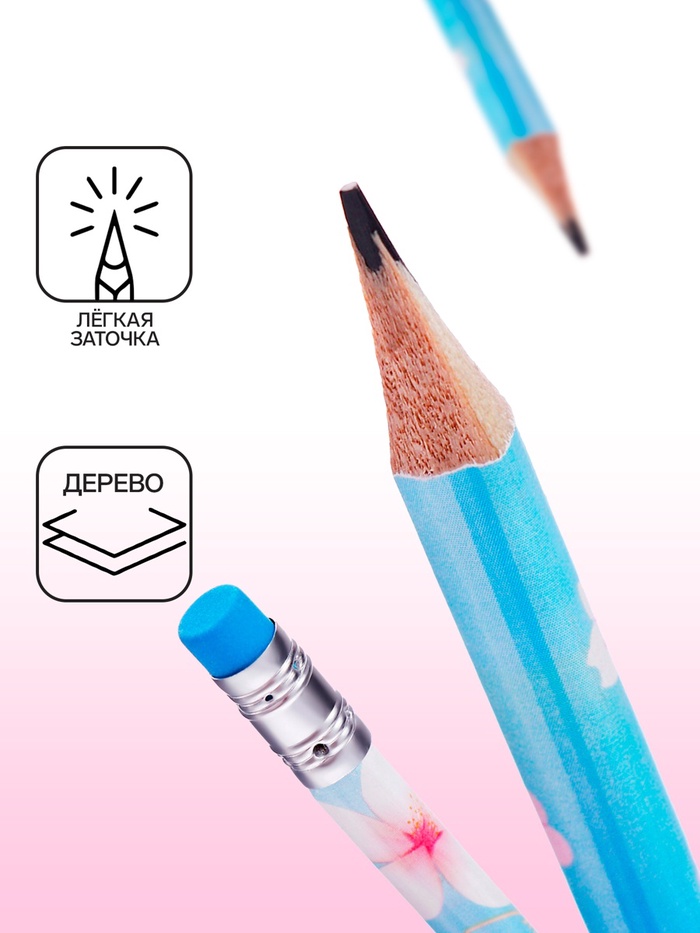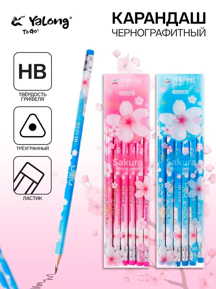 Карандаш чернографитный НВ с ластиком, Сакура МИКС — Характеристики