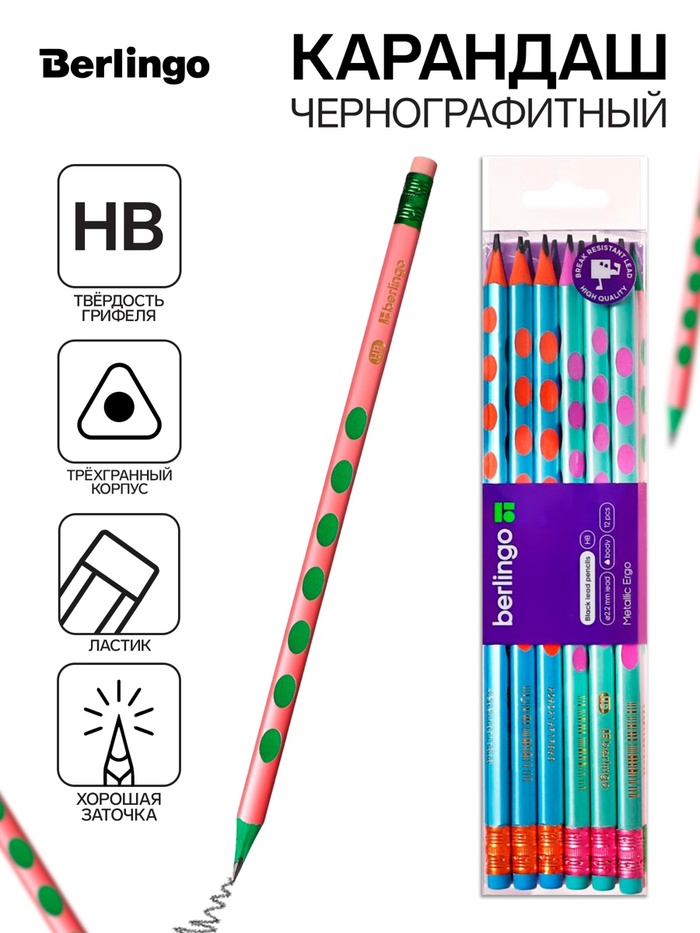 Прочный графитовый стержень не ломается и не крошится, а деревянный корпус легко затачивается.