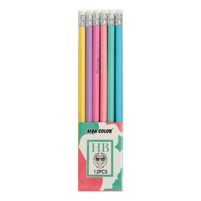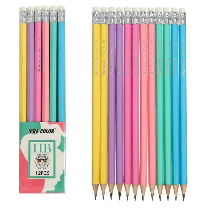 Карандаш чернографитный «Пастельный» твёрдость НВ, с ластиком, шестигранный, заточенный, корпус МИКС, — Характеристики
