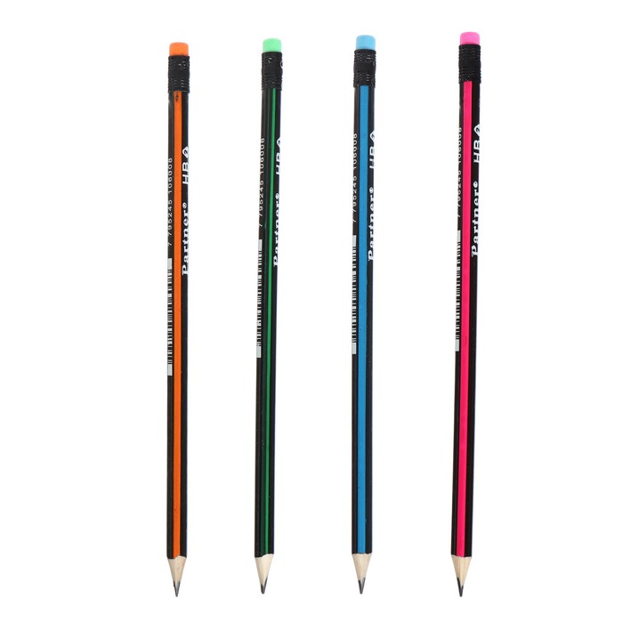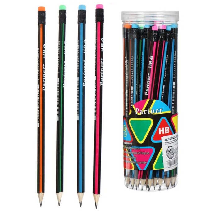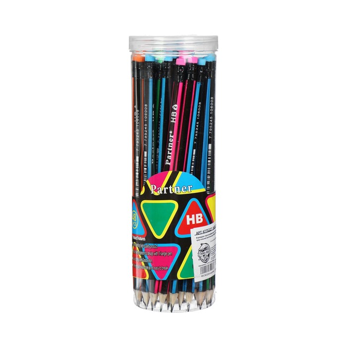Карандаш чернографитный «Полоски» твёрдость НВ, с ластиком, корпус треугольный, заточенный, в тубусе, МИКС — Характеристики
