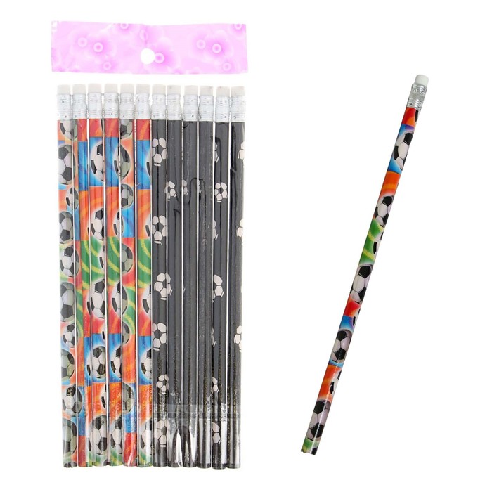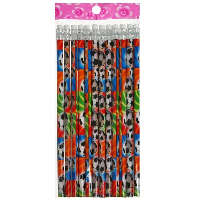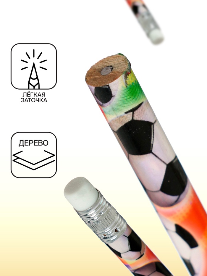Карандаш чернографитный с ластиком Calligrata «Футбол», твёрдость НВ, МИКС — Характеристики