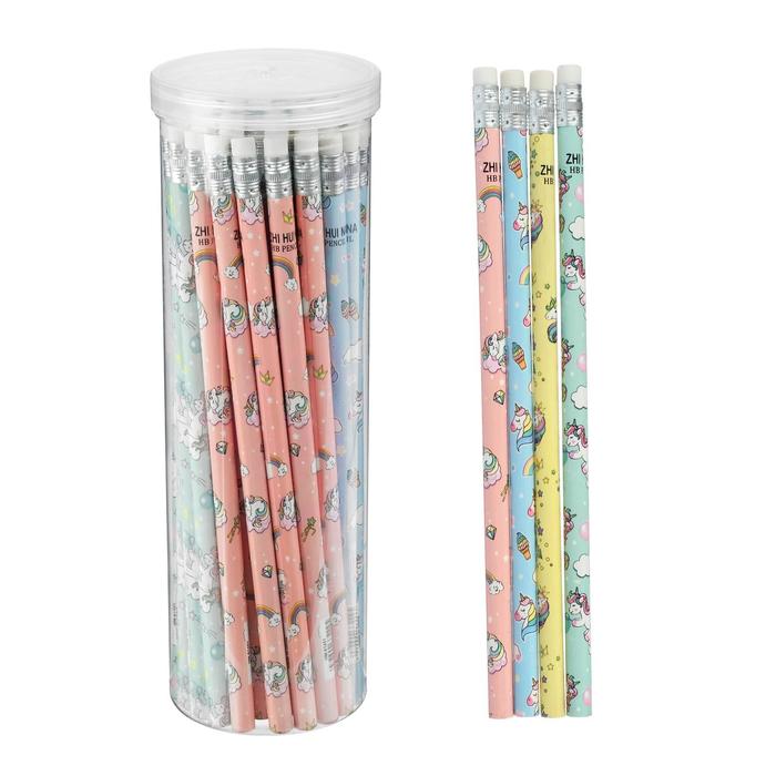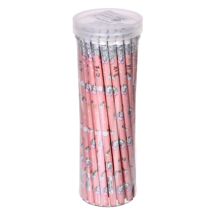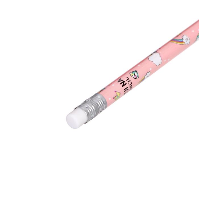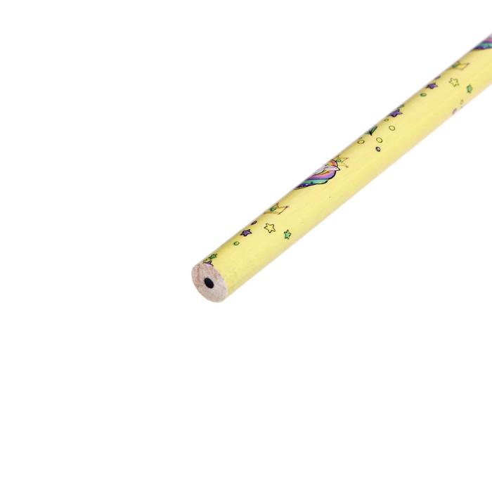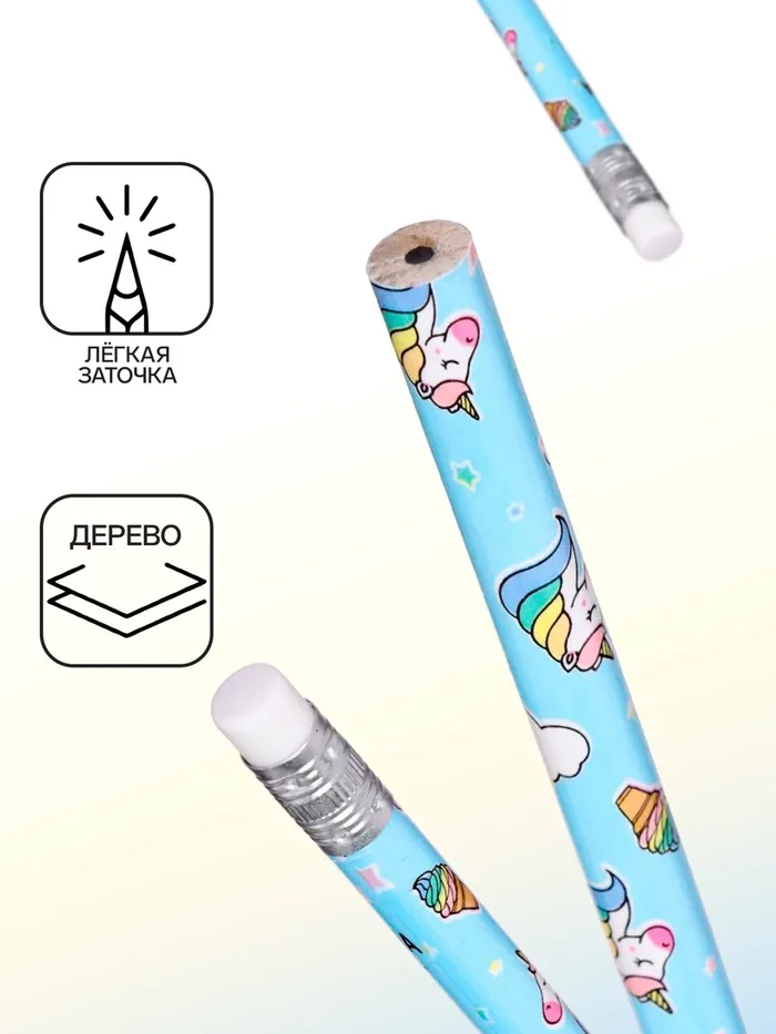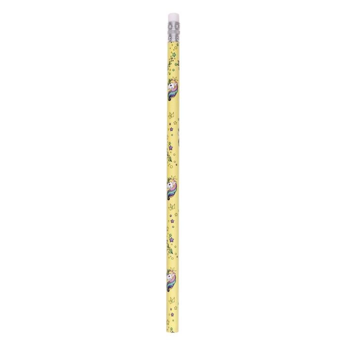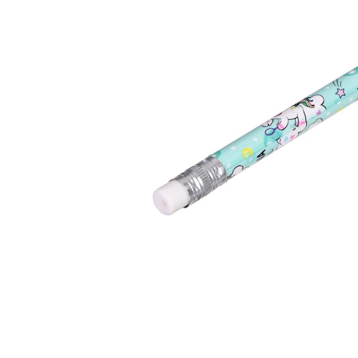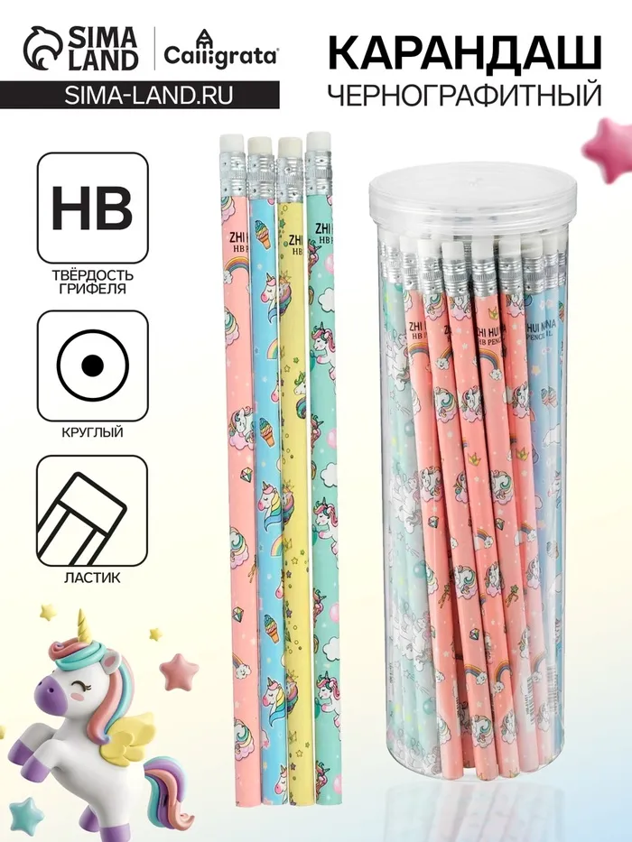 Карандаш чернографитный с ластиком «Единороги», твердость НВ, корпус круглый, МИКС (штрихкод на штуке) — Характеристики