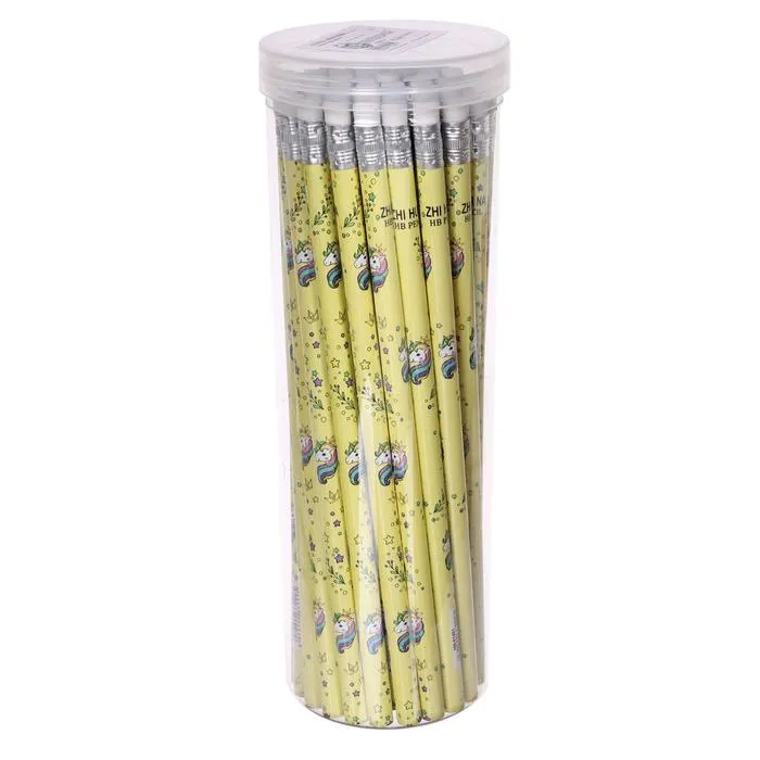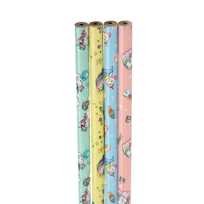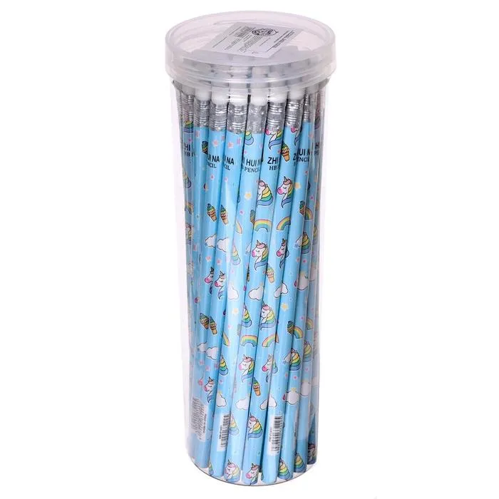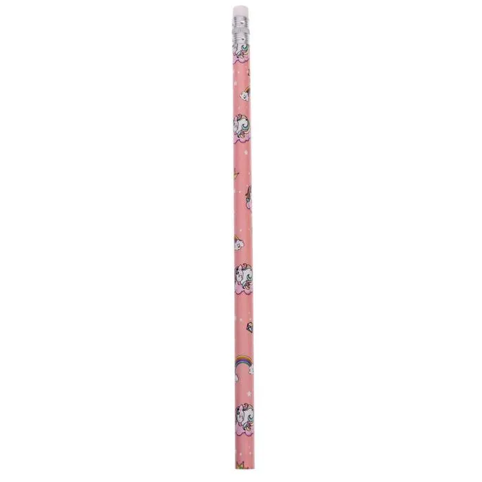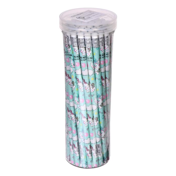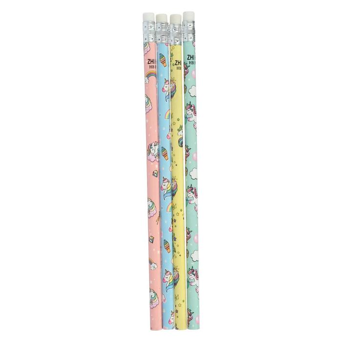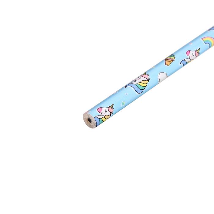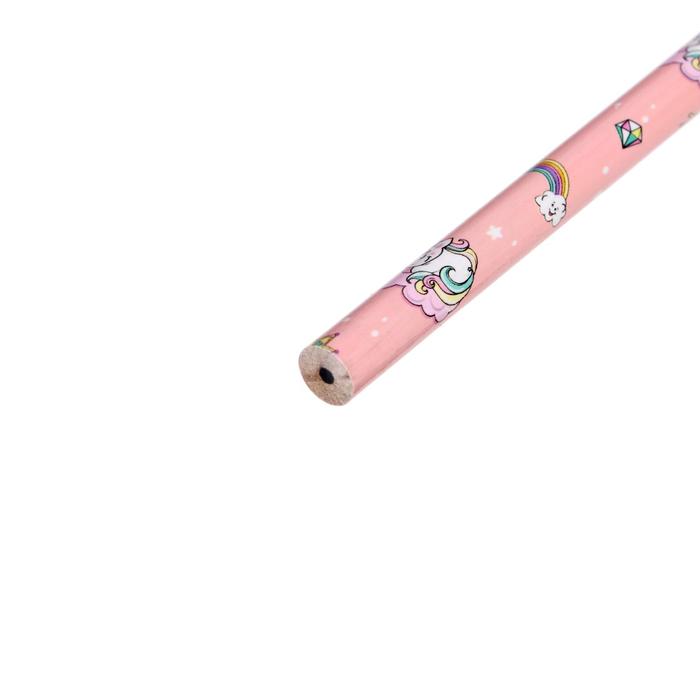 Карандаш чернографитный с ластиком «Единороги», твердость НВ, корпус круглый, МИКС (штрихкод на штуке) — Характеристики