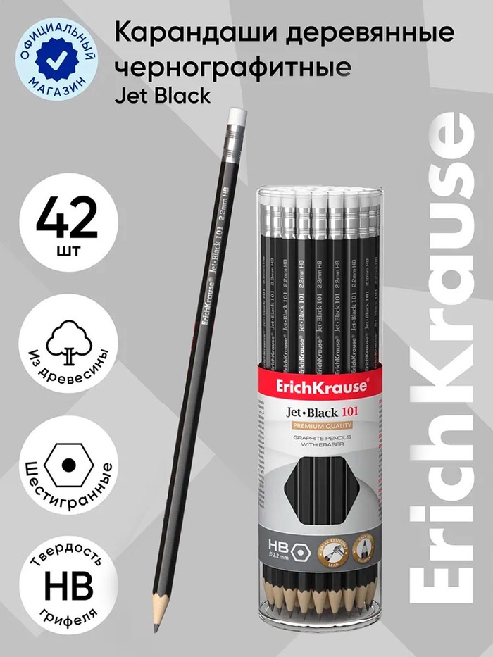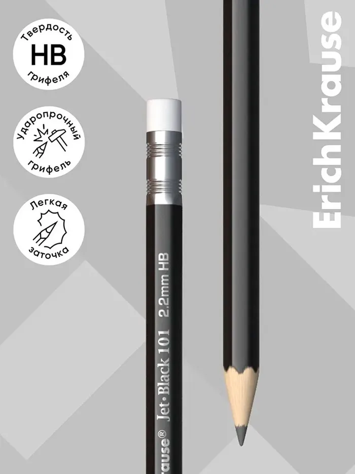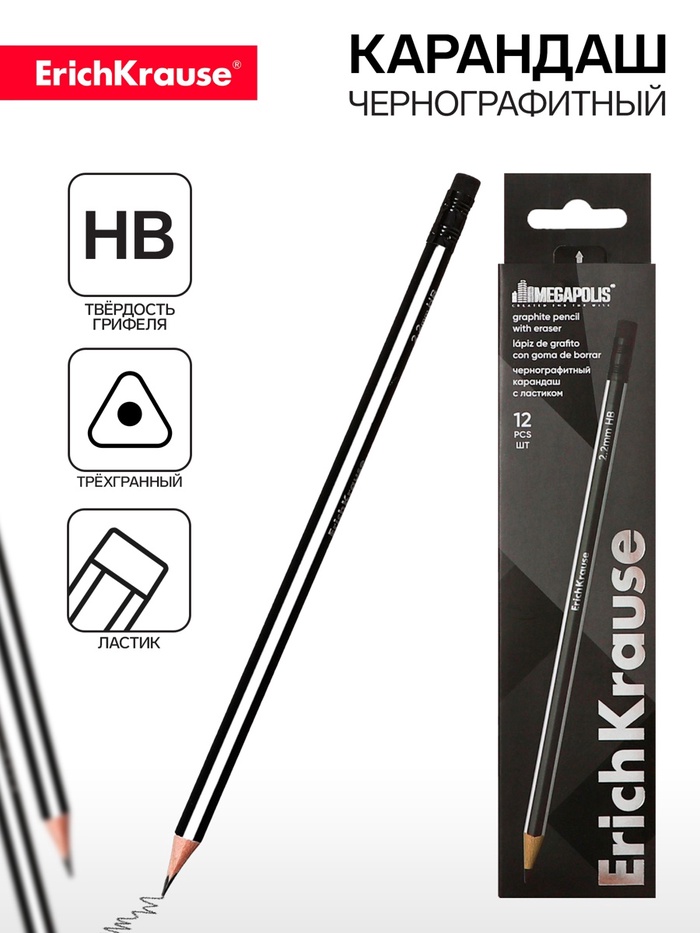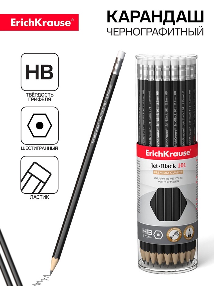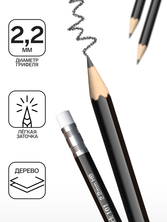 Классический шестигранный чернографитный карандаш с ластиком из отборной древесины, твердость НВ. Специальная пропитка древесины и сплошная проклейка грифеля обеспечивает высокую ударопрочность. Мягкая древесина и идеальная центровка грифеля гарантируют легкую заточку с экономным расходом карандаша. Грифель диаметром 2,2мм не царапает бумагу и не крошится. Ластик карандаша средней жесткости изготовлен из экологически чистого и гипоаллергенного материала термопластичной резины (TPR). Не содержит ПВХ.