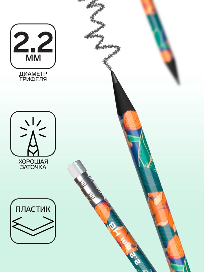- Грифель диаметром 2.2 мм не царапает бумагу и не крошится при рисовании.