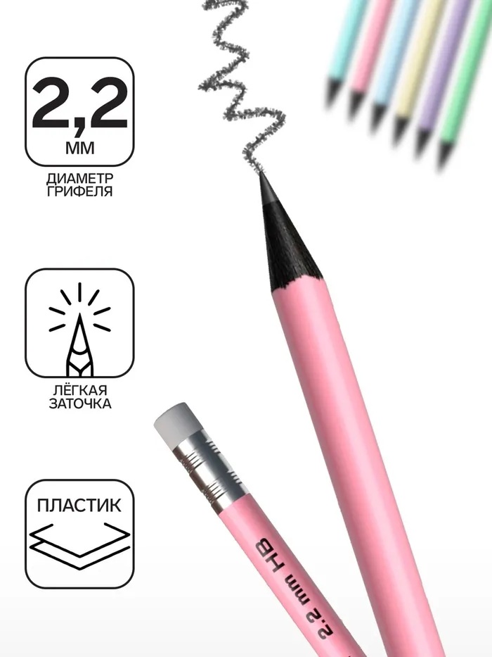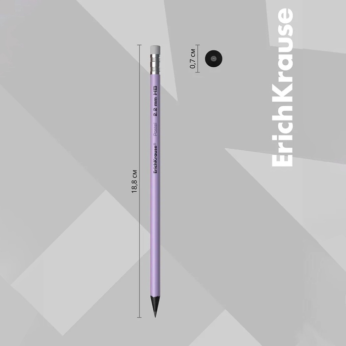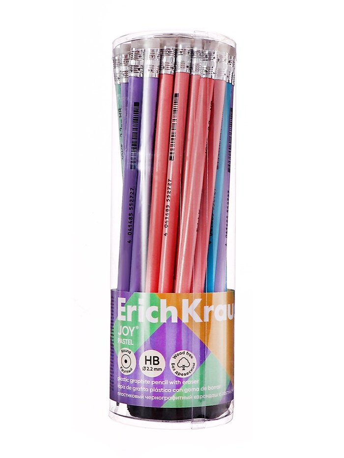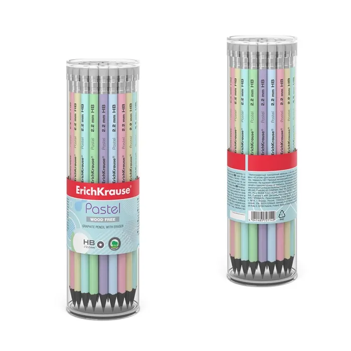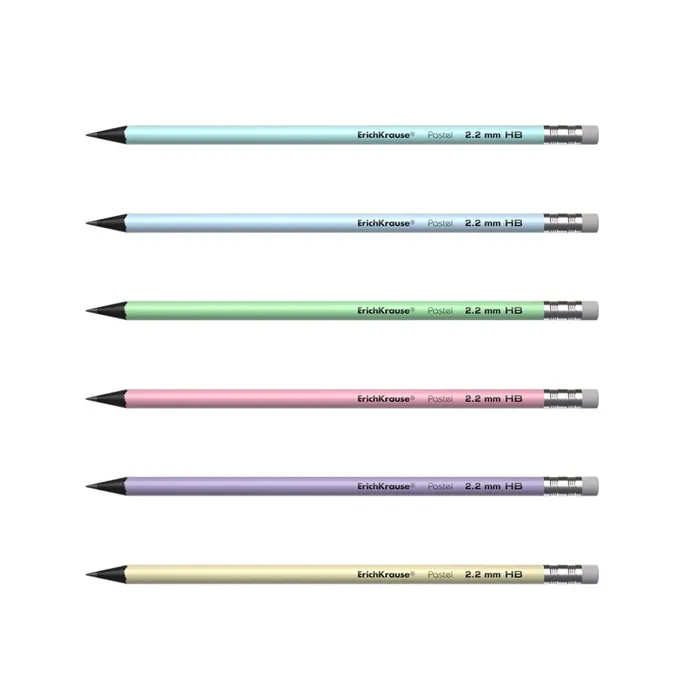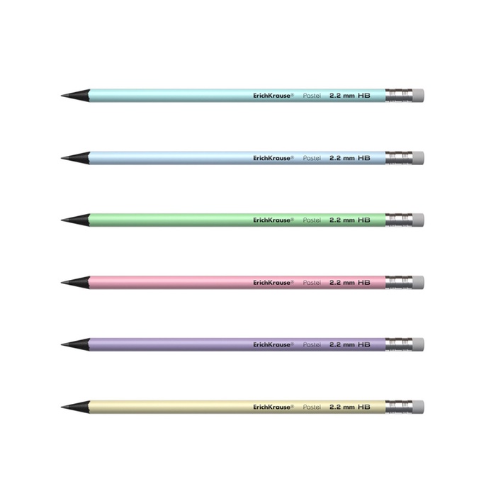 Карандаш чернографитный с ластиком ErichKrause «Pastel», HB, грифель d=2.2 мм, пластик, круглый в тубусе, пастель МИКС — Характеристики
