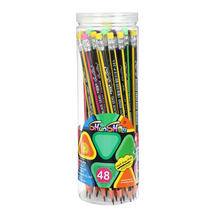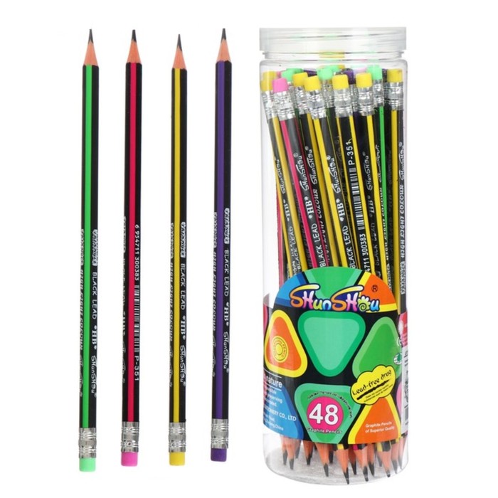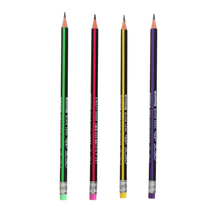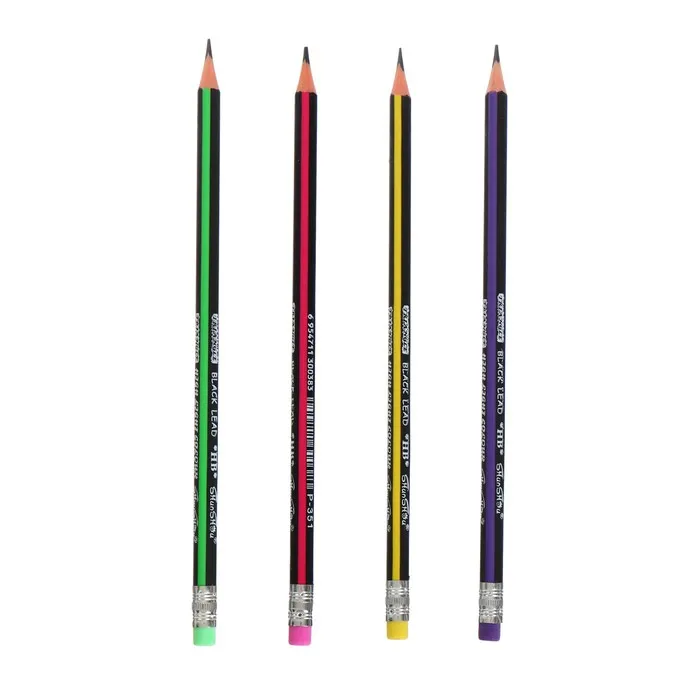 Карандаш чернографитный с ластиком «Полоски» твёрдость НВ, корпус треугольный, заточенный, в тубусе, МИКС — Характеристики