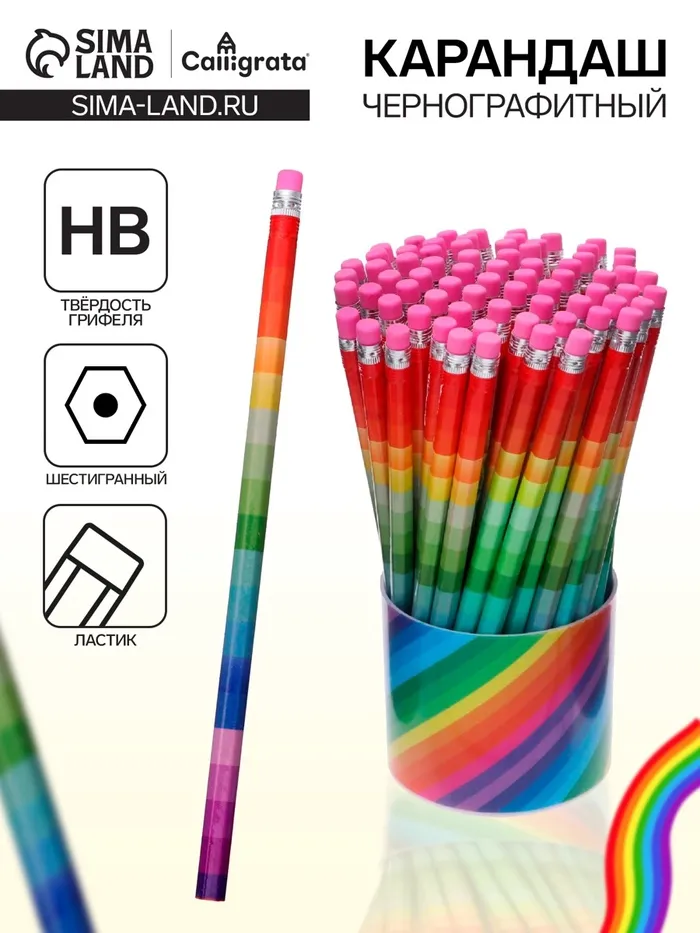 Карандаш чернографитный с ластиком «Радуга», твёрдость НВ — Характеристики