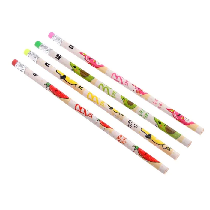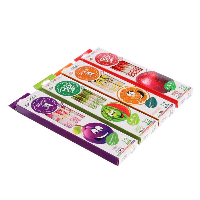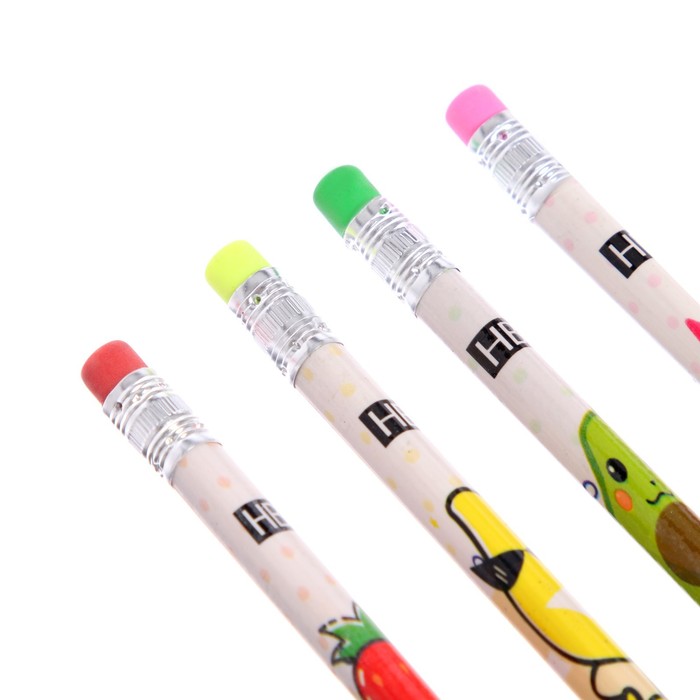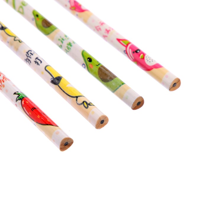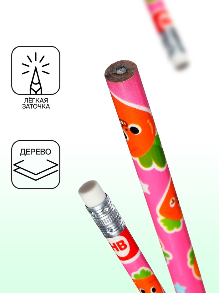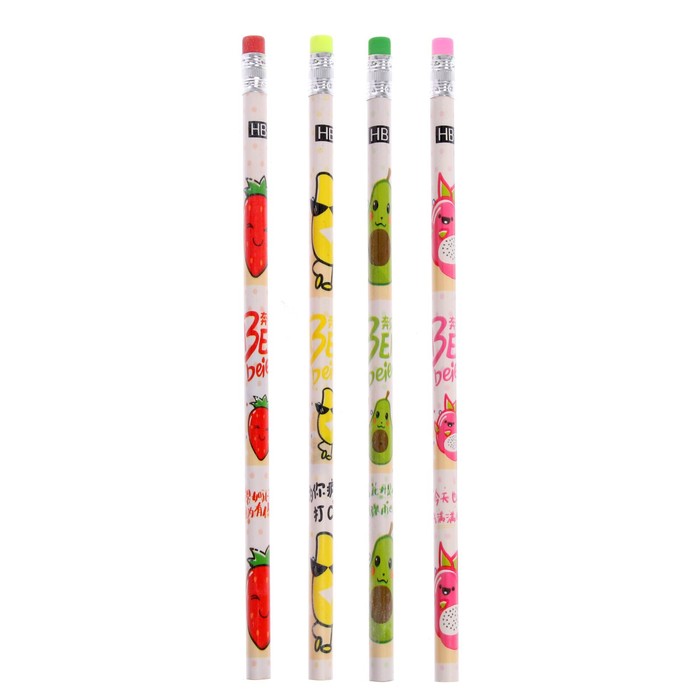 Карандаш чернографитный твёрдость НВ «Фрукты/Ягоды» с ластиком, корпус круглый, шестигранный, МИКС, цена за 1 штуку — Характеристики