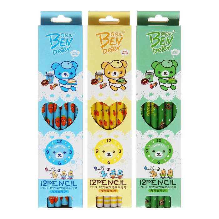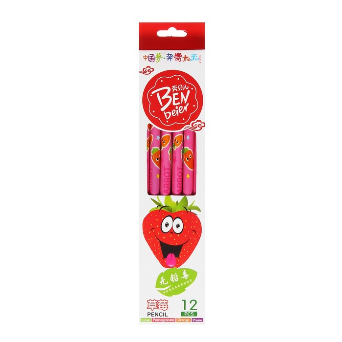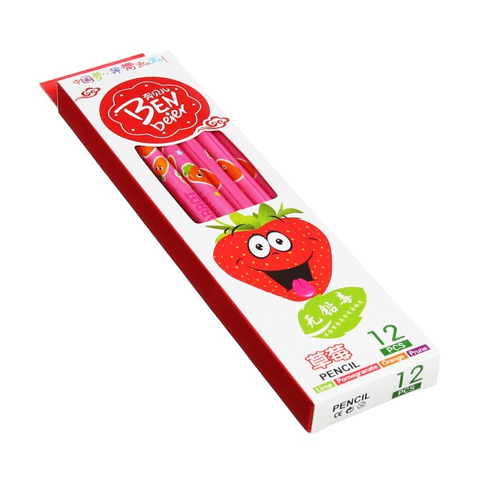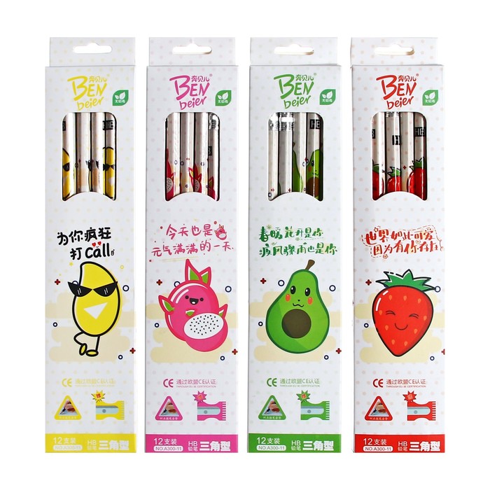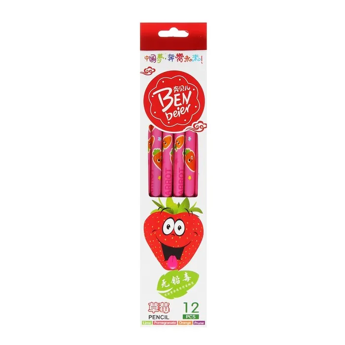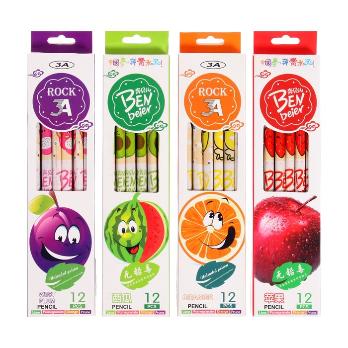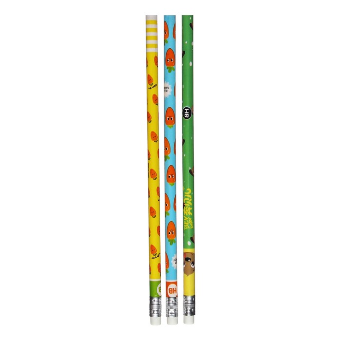 Карандаш чернографитный твёрдость НВ «Фрукты/Ягоды» с ластиком, корпус круглый, шестигранный, МИКС, цена за 1 штуку — Характеристики
