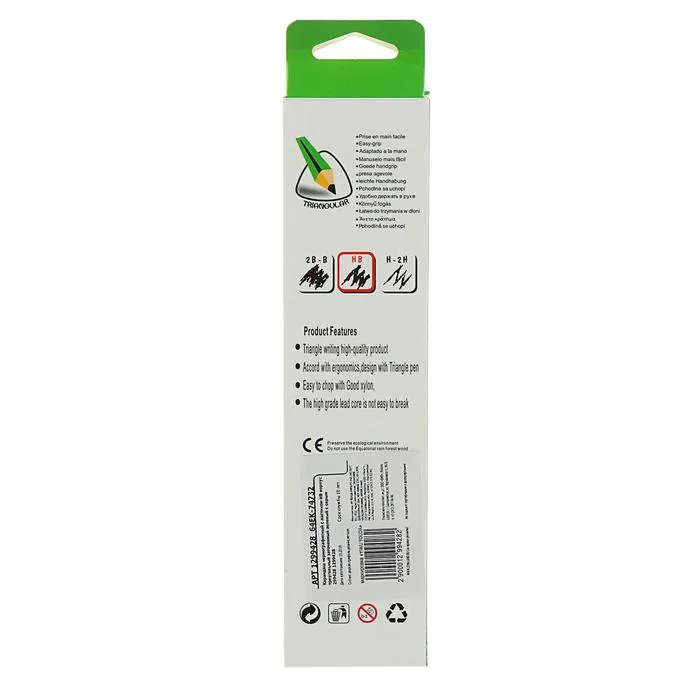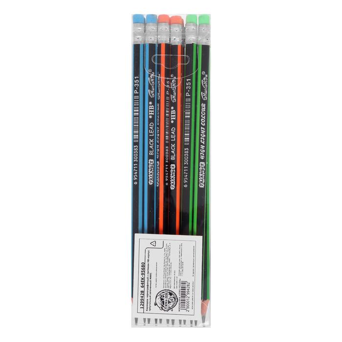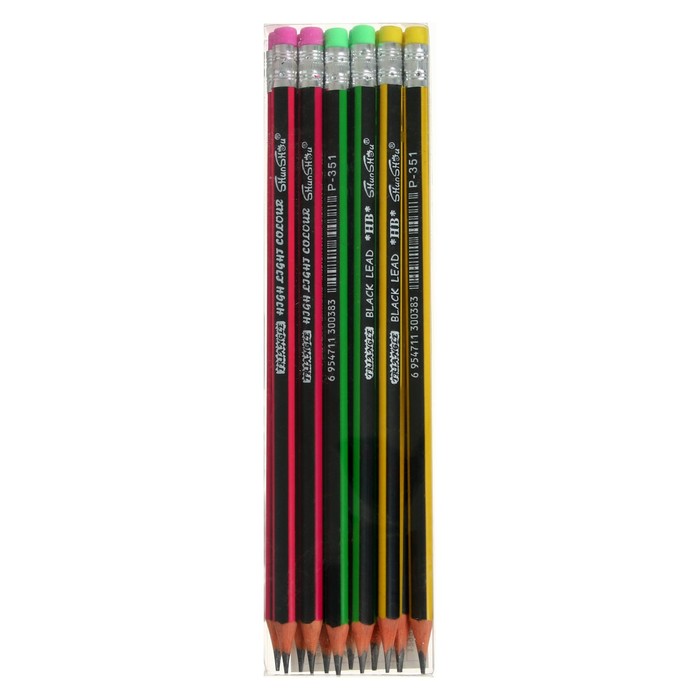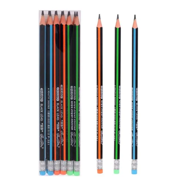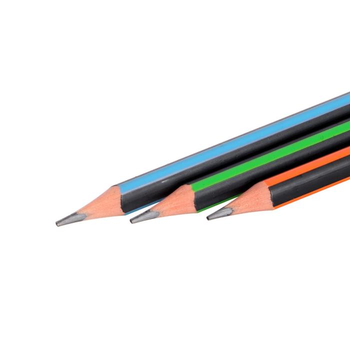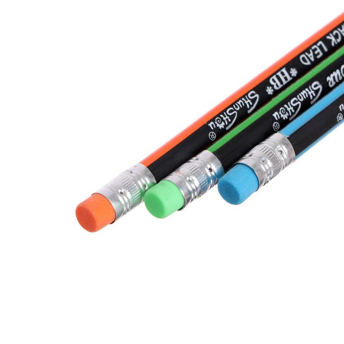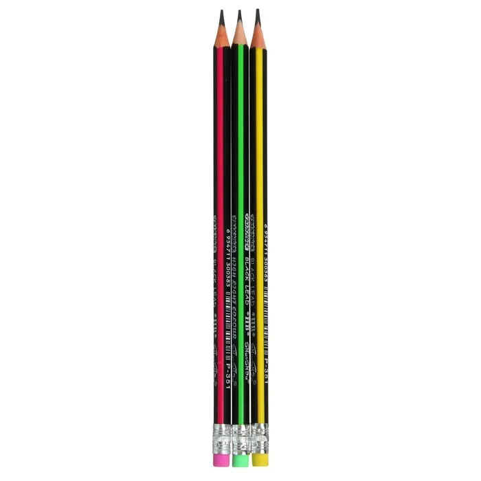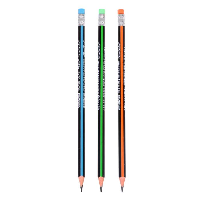 Карандаш чернографитный твёрдость НВ с ластиком, корпус треугольный, заточенный, МИКС — Характеристики