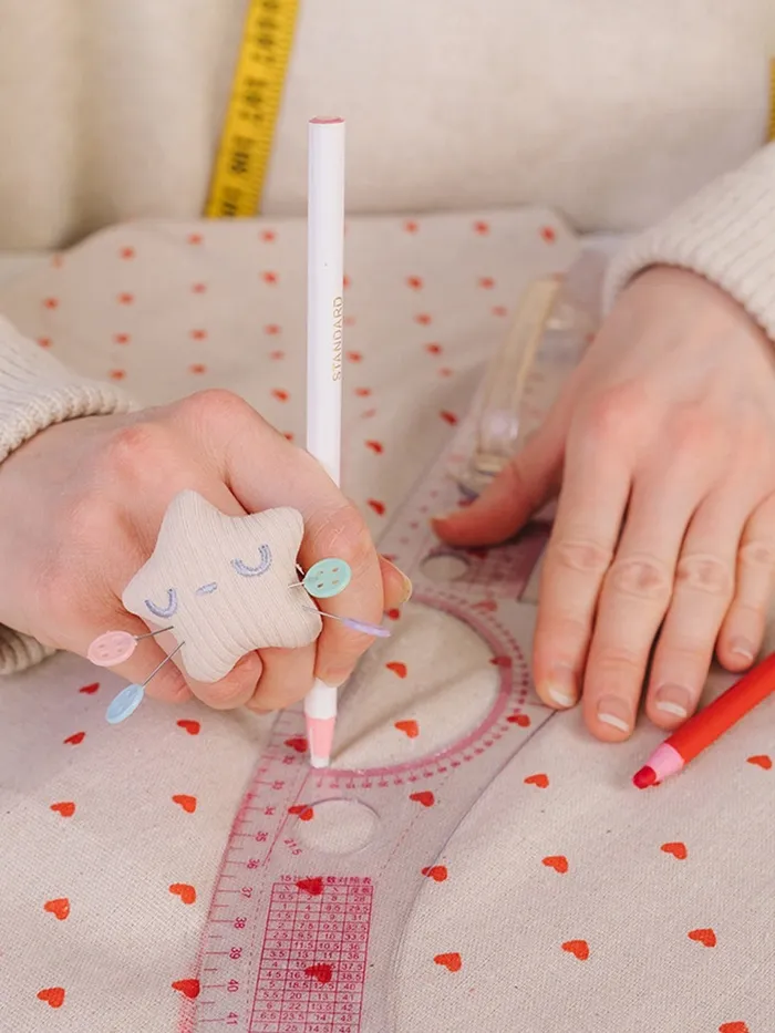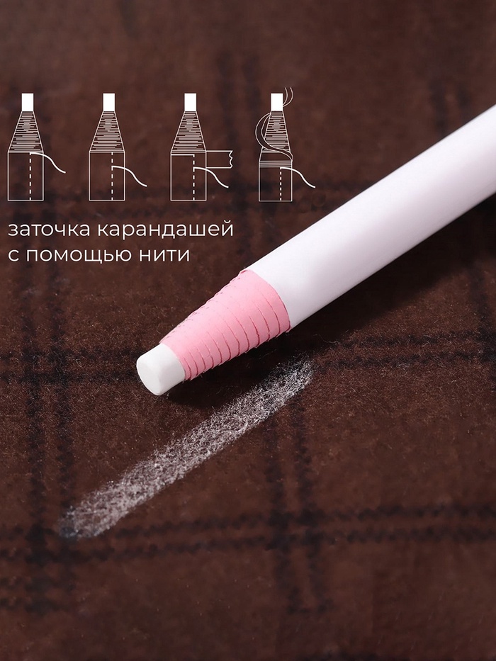 Залогом хорошей выкройки являются чёткие, яркие линии. Самозатачивающийся карандаш для ткани обеспечивает ровную прорисовку даже самых мелких деталей. Чтобы подточить карандаш - достаточно потянуть за верёвочку и убрать лишние остатки.