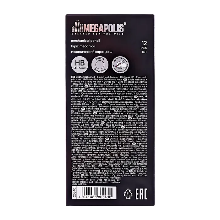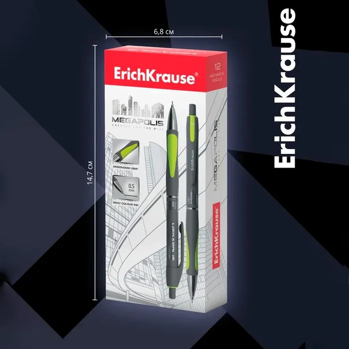 Карандаш механический ErichKrause «Megapolis Concept», 0.5 мм, НВ, резиновый упор, в коробке — Характеристики