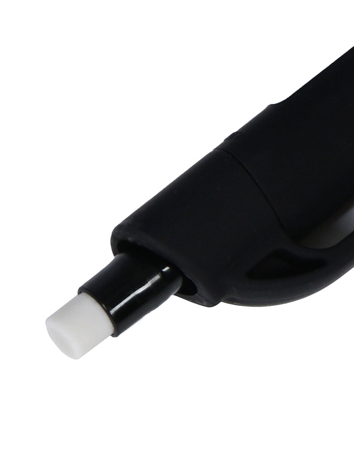 Механический карандаш с убирающейся цангой и ластиком. Карандаш имеет треугольный корпус с покрытием Soft Touch. Твердость HB. Диаметр грифеля - 0.9 мм.
