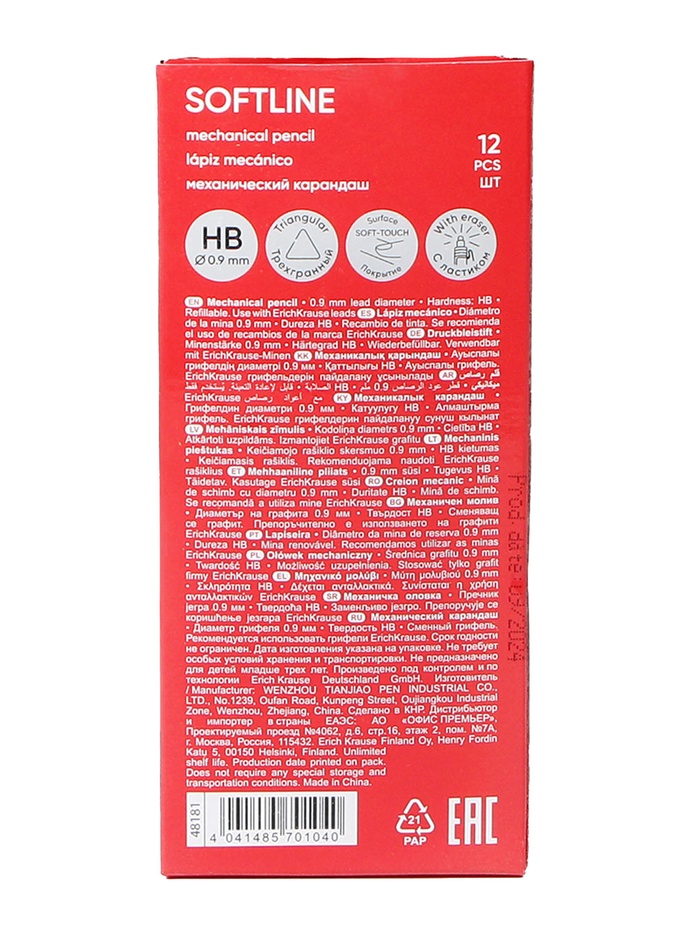 Карандаш механический ErichKrause "SoftLine", НВ, грифель d=0.9 мм, черный, в коробке — Характеристики