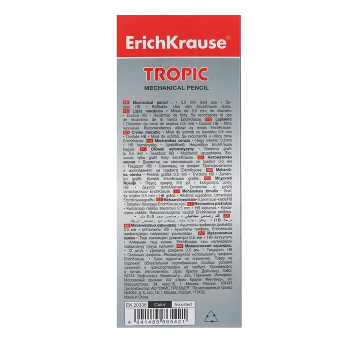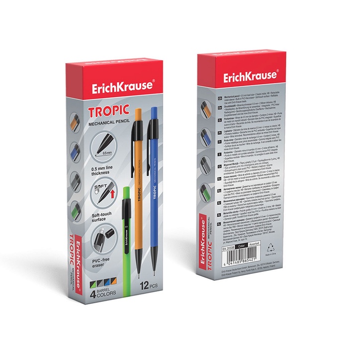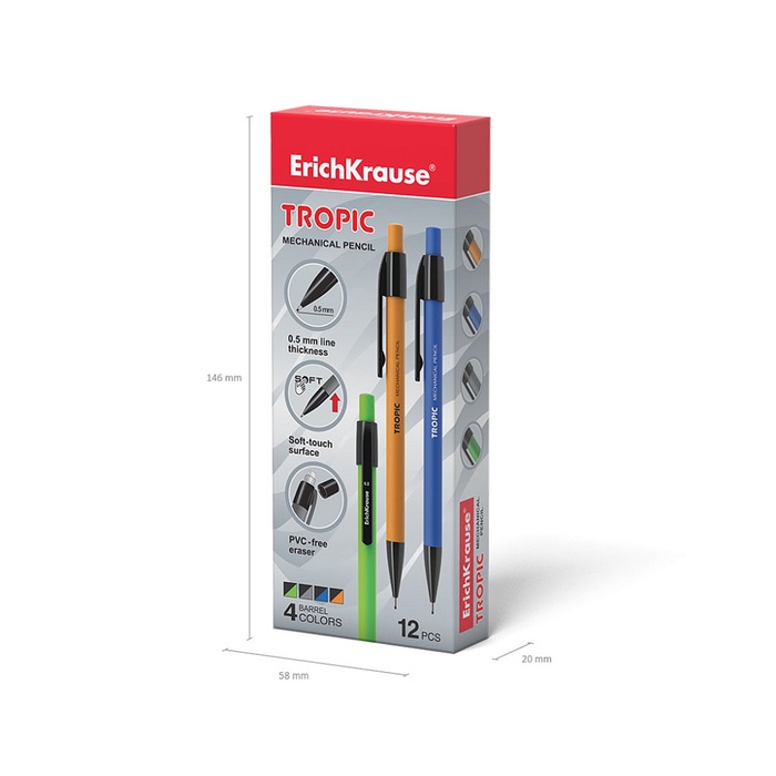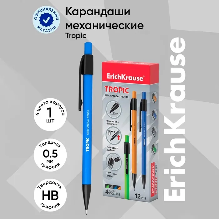 Карандаш механический ErichKrause «Tropic», 0.5 мм, НВ, покрытие Soft Touch, в коробке, МИКС — Характеристики