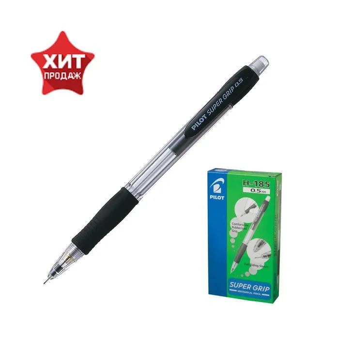 Карандаш механический Pilot Super Grip, 0.5 мм, резиновый упор, чёрный — Характеристики