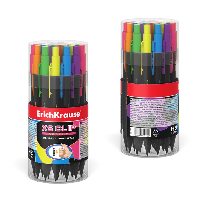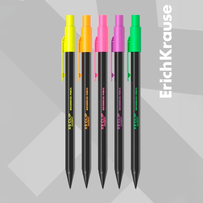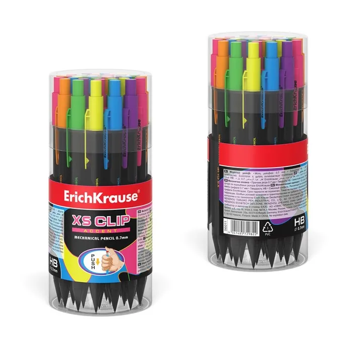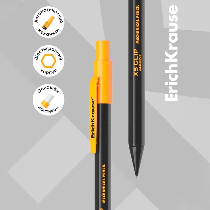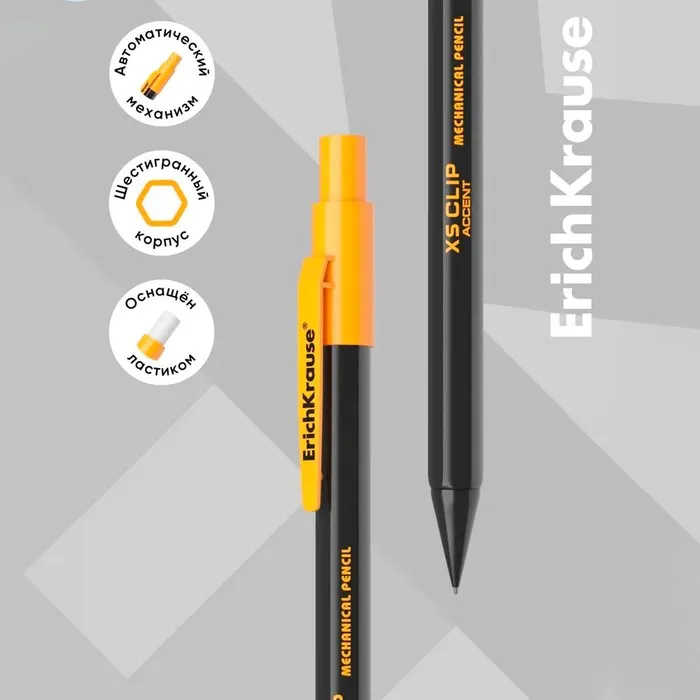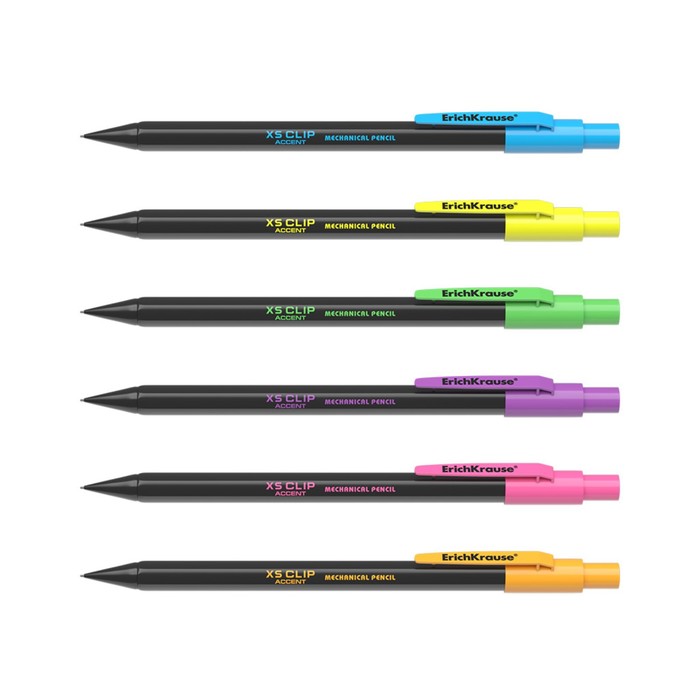Карандаш механический с ластиком ErichKrause «XS Clip Accent», 0.7 мм, НВ, в коробке, МИКС — Характеристики