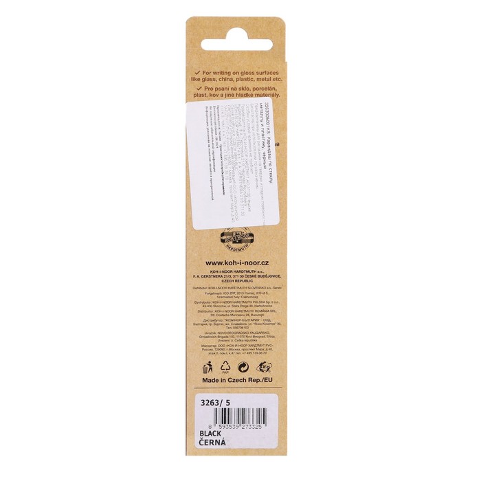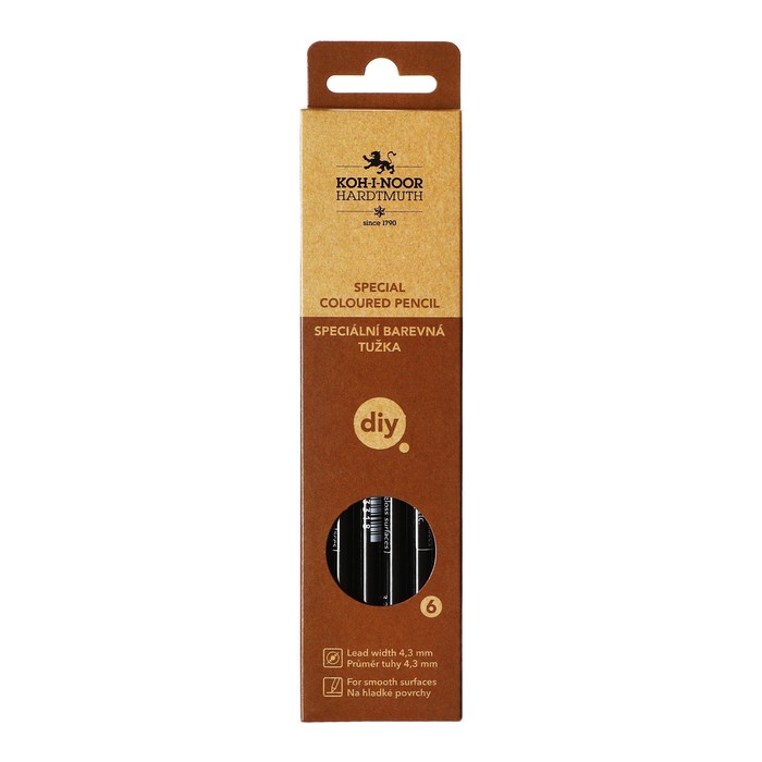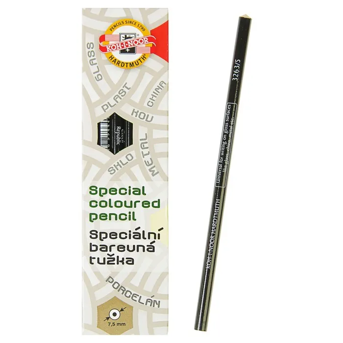 Карандаш Koh-I-Noor подходит для рисования на любой гладкой поверхности. Он прекрасно пишет по пластику, фарфору, металлу, камню и стеклу.