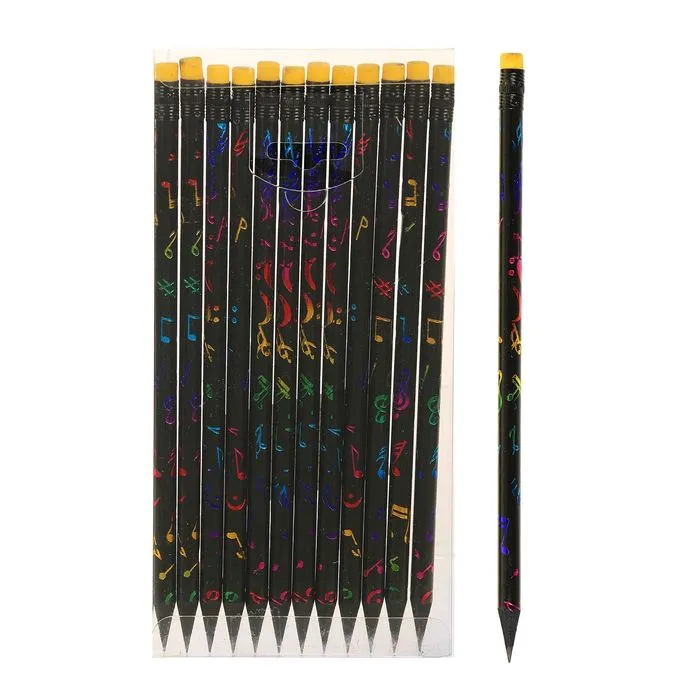 Карандаш простой, чернографитный с ластиком, твёрдость НВ, корпус чёрный с рисунком — Характеристики