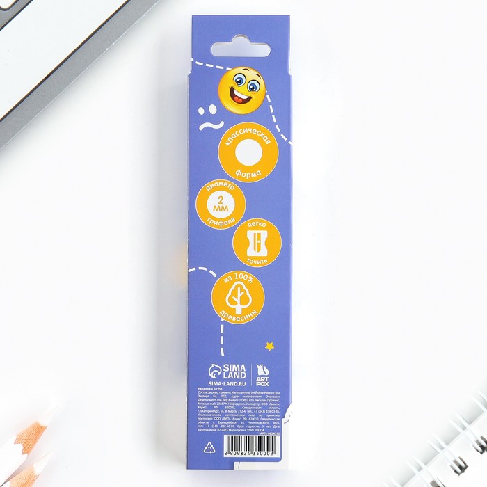 Карандаш простой чёрнографитный без ластика «Улыбочку» — Характеристики