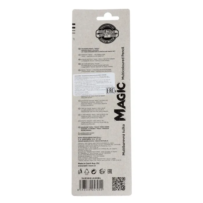 Многоцветный карандаш Koh-I-Noor Magic original отлично подходит по-настоящему творческим личностям. Карандаш состоит из трёх цветов, которые в процессе работы смешиваются друг с другом и создают эффект 3D. Это позволяет добавлять в рисунки яркие эффекты. Карандаш идеален для заштриховки и растушёвки. При необходимости линии можно легко стереть ластиком. Карандаш легко точится ножом или точилкой. Прочный грифель устойчив к механическим повреждениям.