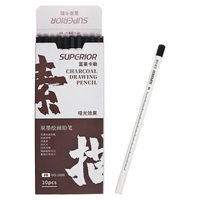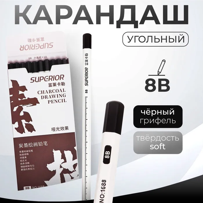 Карандаш угольный чёрный 8 В, корпус белый — Характеристики