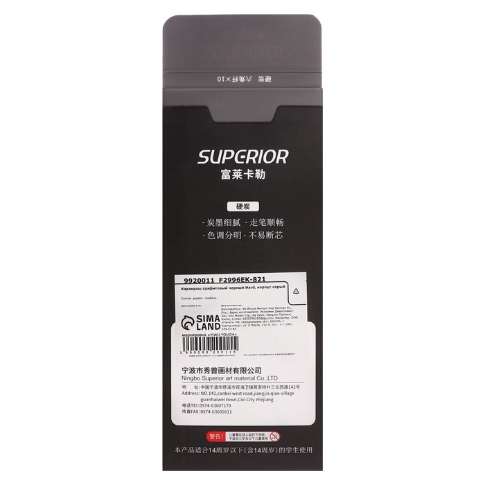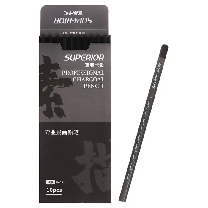 Карандаш угольный чёрный, Hard, корпус серый — Характеристики