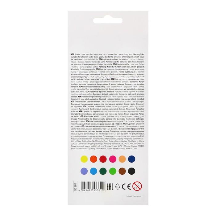 Пластиковые цветные карандаши ErichKrause® Basic представлены широкой палитрой оттенков, которые хорошо смешиваются между собой, позволяя создавать рисунки любой сложности.
