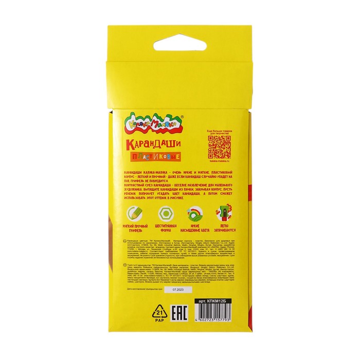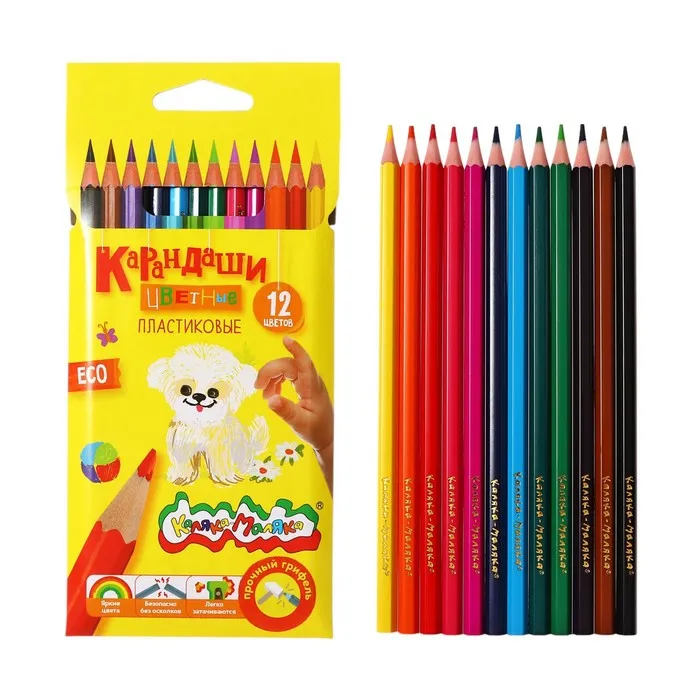 Карандаши 12 цветов "Каляка-Маляка", шестигранные, пластиковый корпус — Характеристики