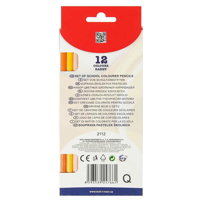 Карандаши 12 цветов Koh-I-Noor 2112, рифлёная поверхность, картонная упаковка, европодвес — Характеристики