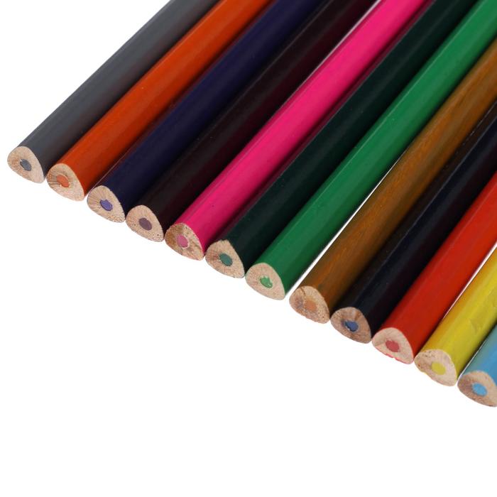 Набор состоит из 12 цветов.Трехгранная форма сечения корпуса позволяет не скатываться карандашу с поверхности стола во время занятий рисованием.Они изготовлены из древесины ценных пород и имеют лакированный корпус.Высокосортная древесина и качество исполнения гарантируют легкую заточку..Грифель обладает повышенной прочностью.Все карандаши заточены и поставляются в пакете.Использование цветных карандашей способствует развитию творческого мышления, мелкой моторики рук, цветового восприятия, фантазии и воображения ребенка.
