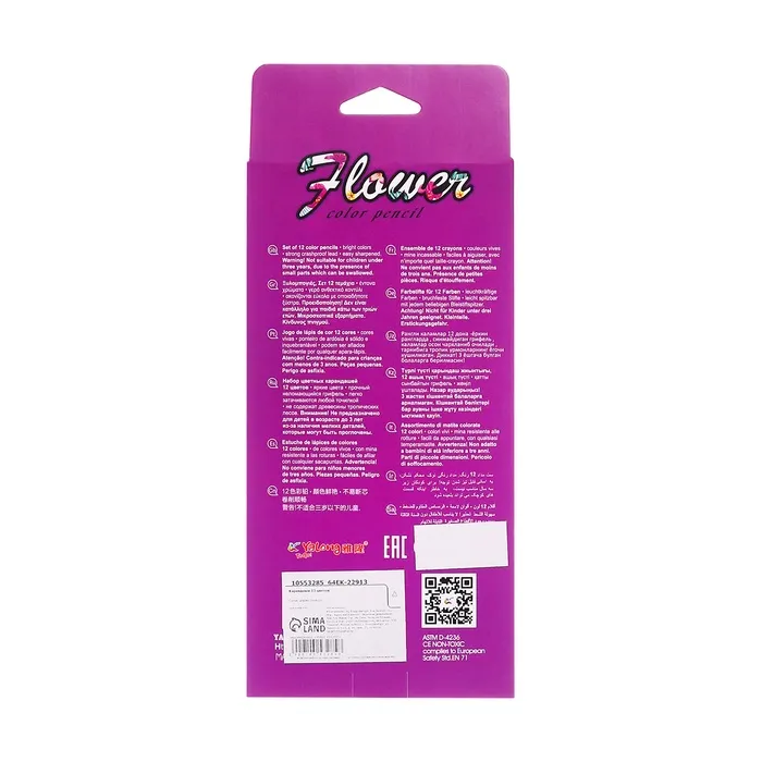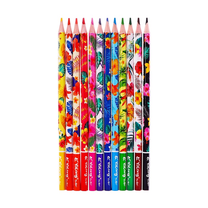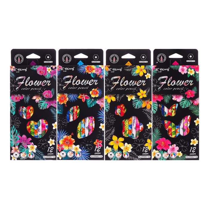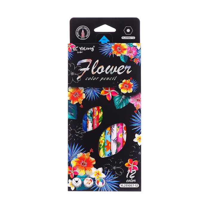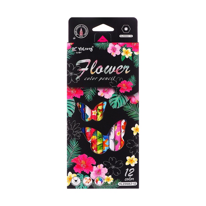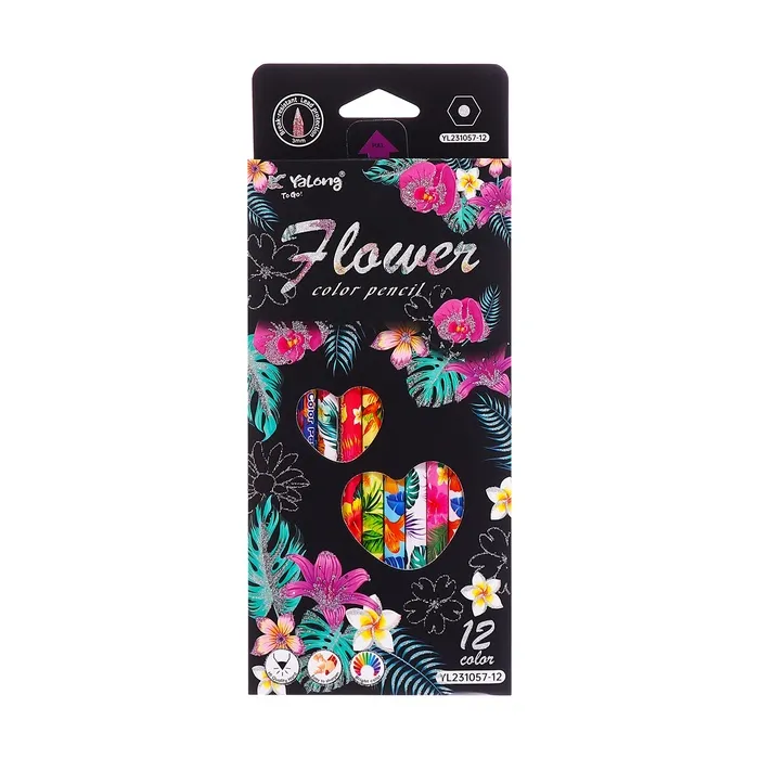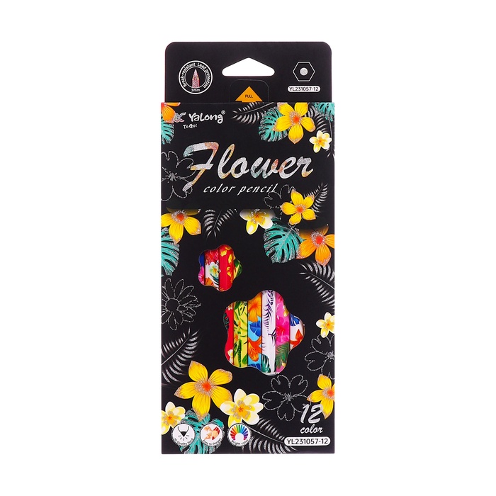 Карандаши 12 цветов в картонной коробке, шестигранные, деревянные,Цветы на чёрном МИКС — Характеристики