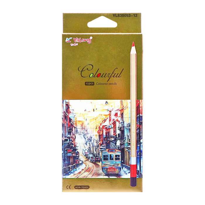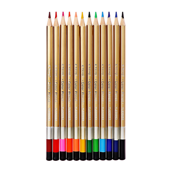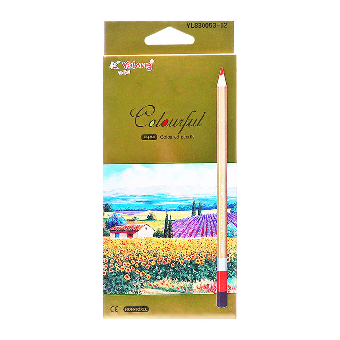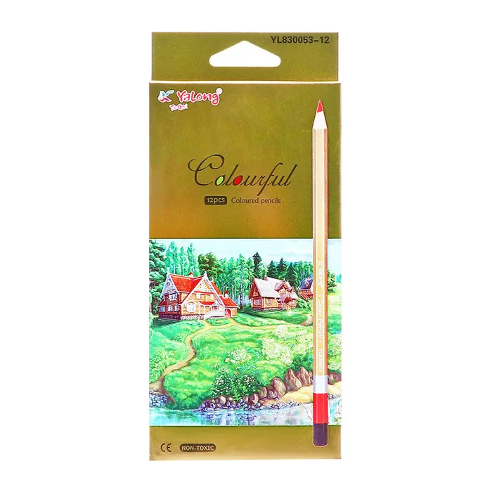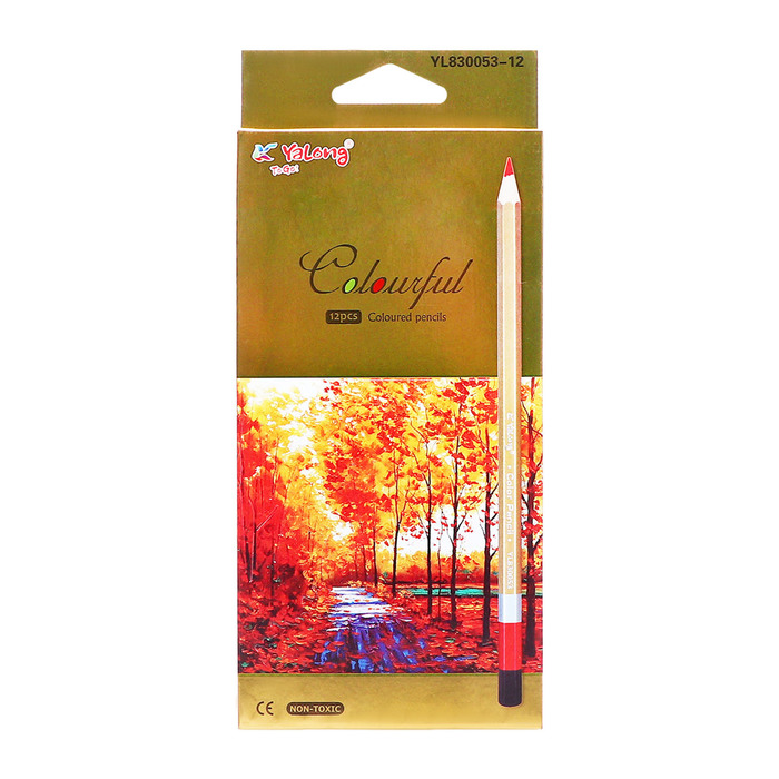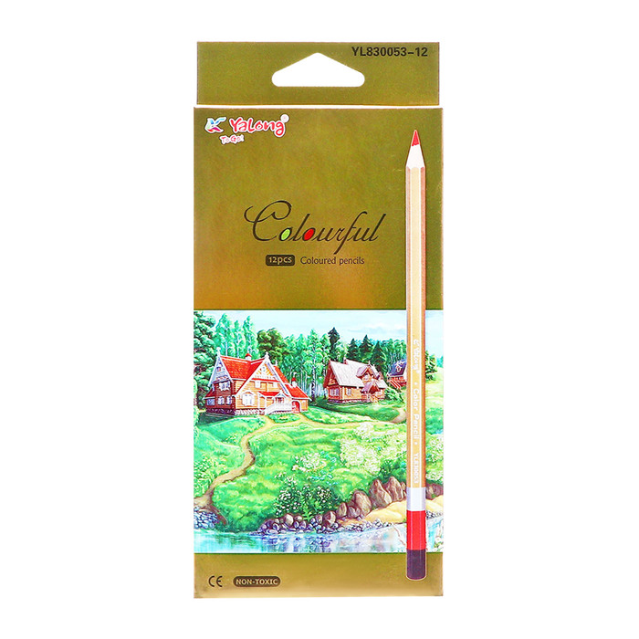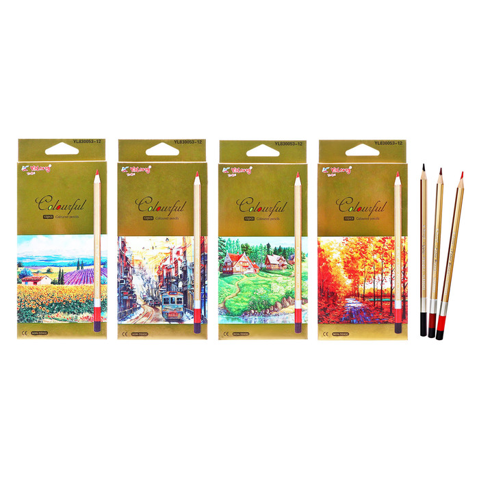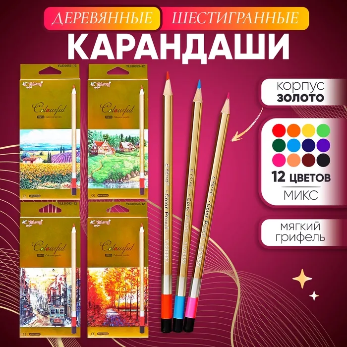 Карандаши 12 цветов, в картонной коробке, шестигранные, корпус золото, деревянные, Пейзаж МИКС 10553 — Характеристики