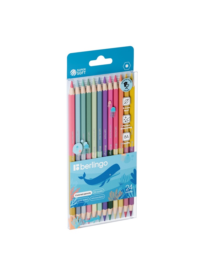 Карандаши 12шт 24цв Berlingo "SuperSoft. Pastel" шестигран,двусторонние,заточ,европод — Характеристики
