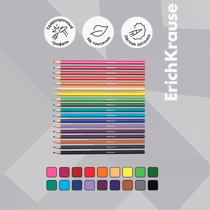 Пластиковые цветные карандаши ErichKrause® Basic представлены широкой палитрой оттенков, которые хорошо смешиваются между собой, позволяя создавать рисунки любой сложности.