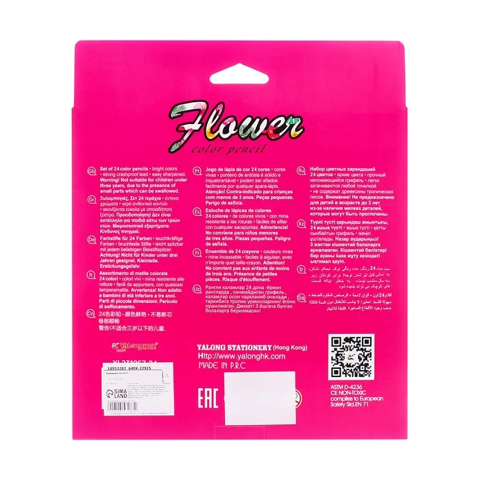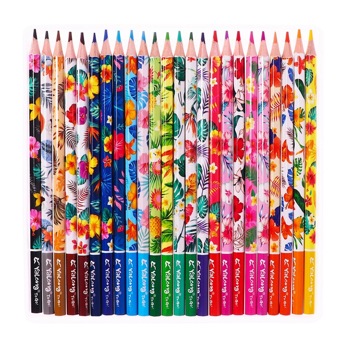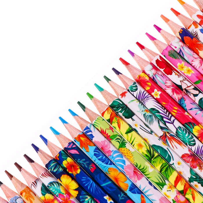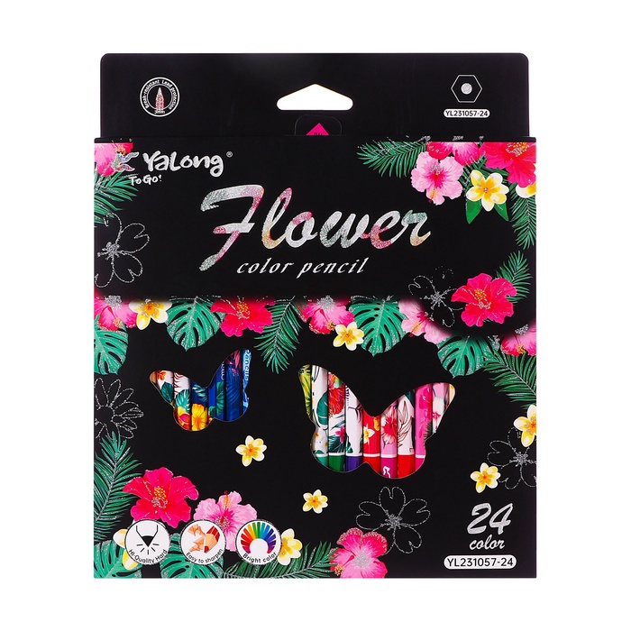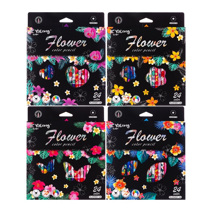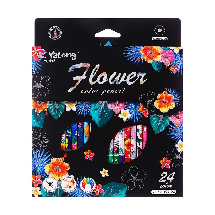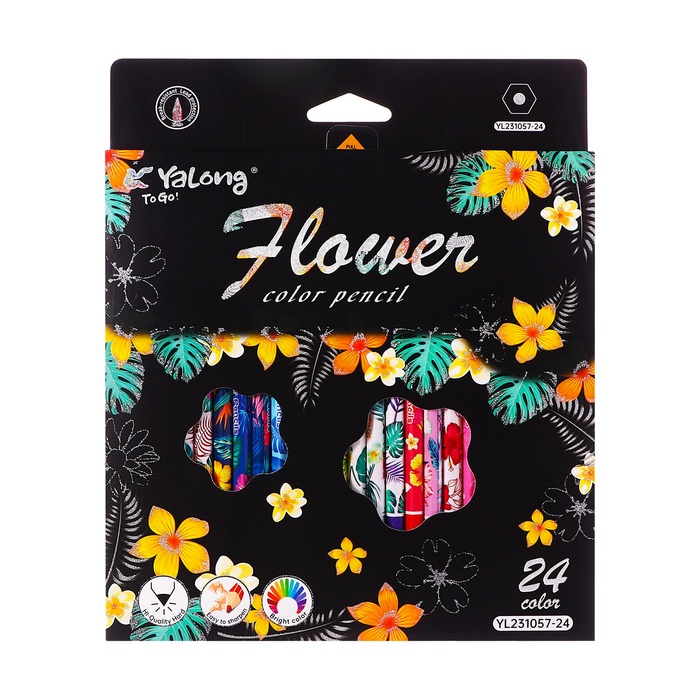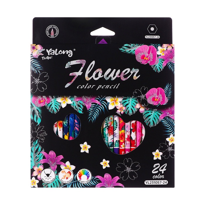 Карандаши 24 цвета в картонной коробке, шестигранные, деревянные,Цветы на чёрном МИКС — Характеристики