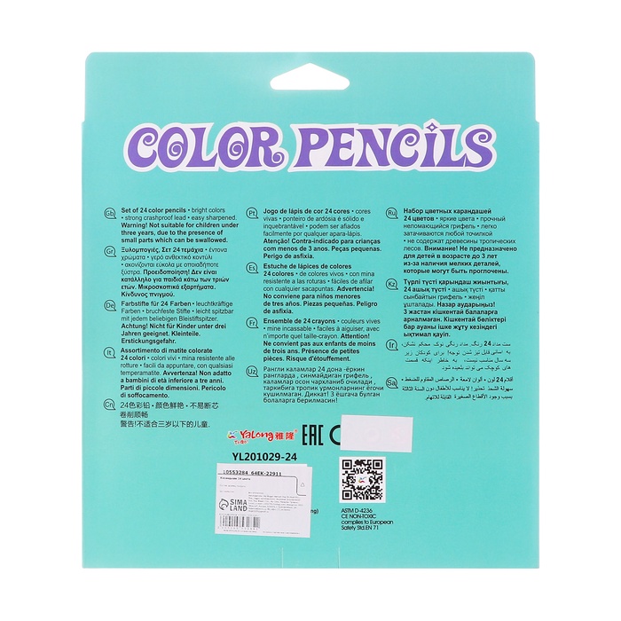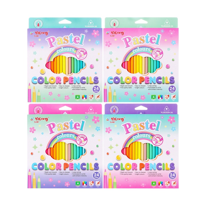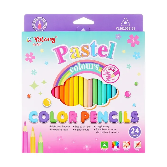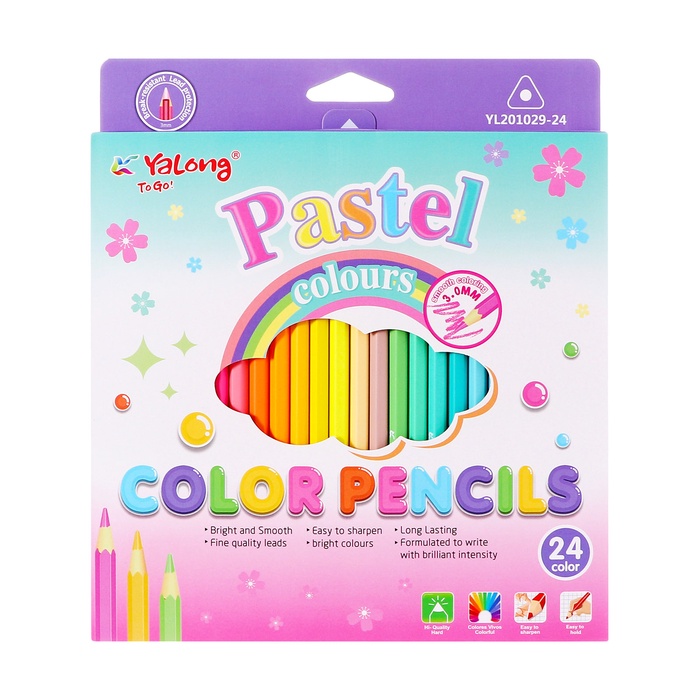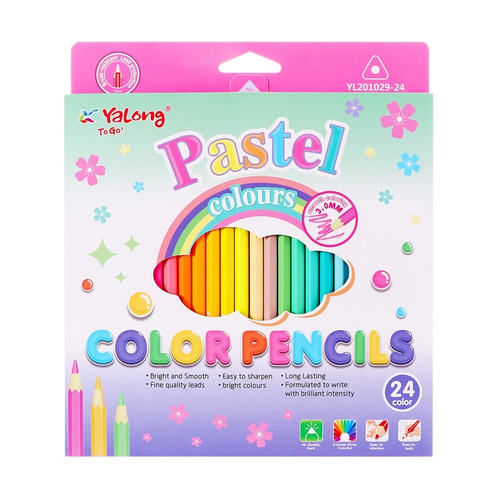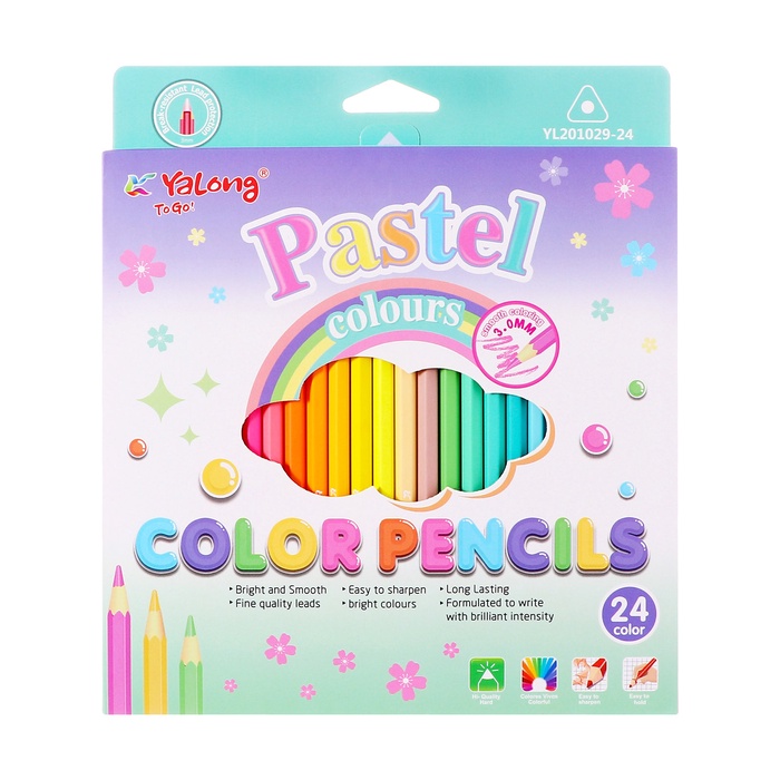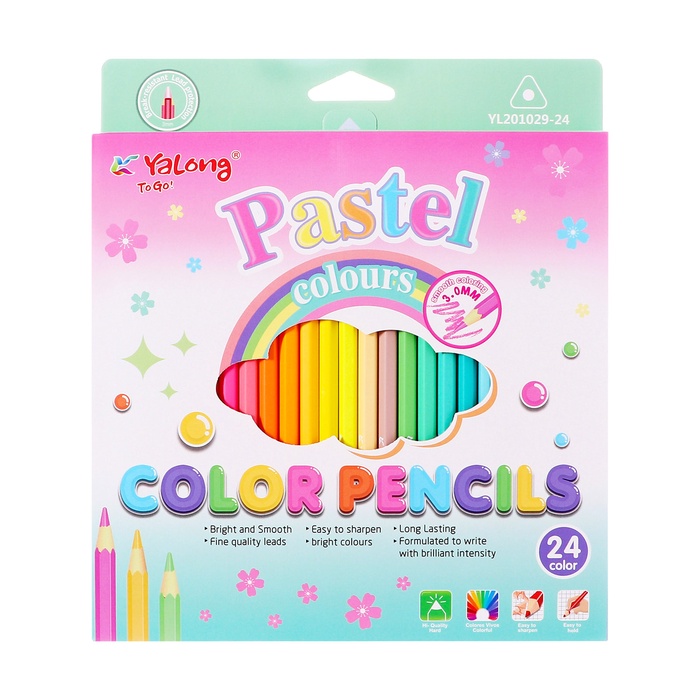 Карандаши 24 цвета в картонной коробке, треугольные, деревянные, Пастель МИКС — Характеристики
