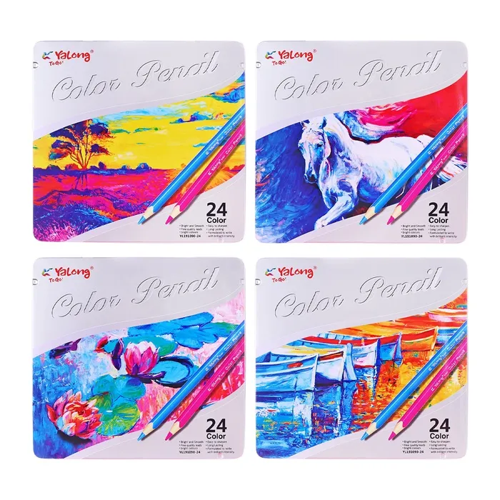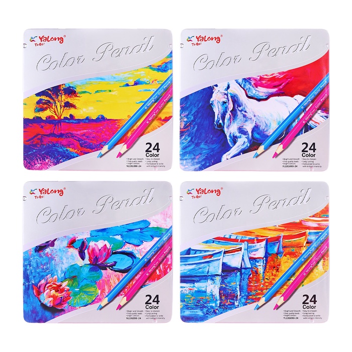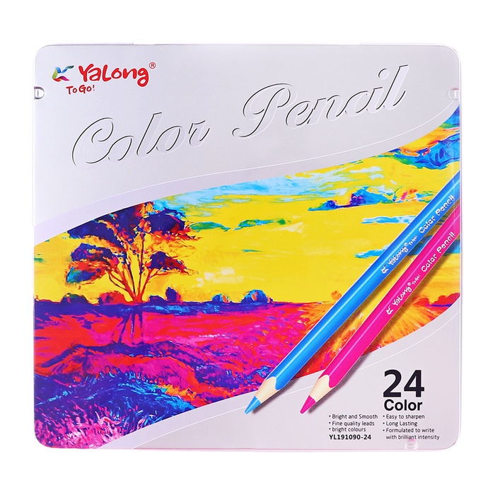 Карандаши 24 цвета, в металл пенале, треугольные, деревянные, Пейзаж МИКС — Характеристики