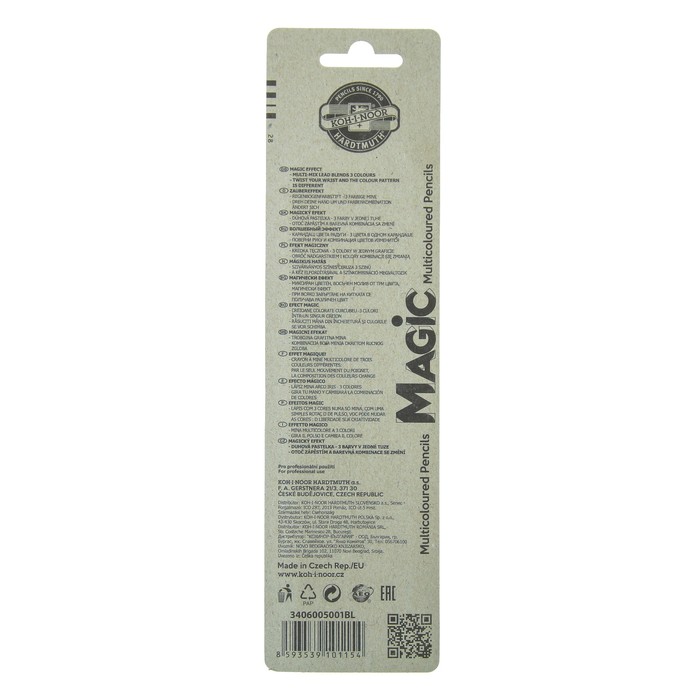 Набор многоцветных карандашей Koh-I-Noor Magic отлично подходит по-настоящему творческим личностям. Один карандаш состоит из трёх цветов, которые в процессе работы смешиваются друг с другом и создают эффект 3D. Это позволяет добавлять в рисунки яркие эффекты. Карандаши идеальны для заштриховки и растушёвки. При необходимости линии можно легко стереть ластиком. Карандаши легко точатся ножом или точилкой. Прочный грифель устойчив к механическим повреждениям.