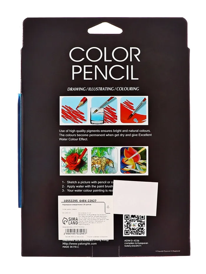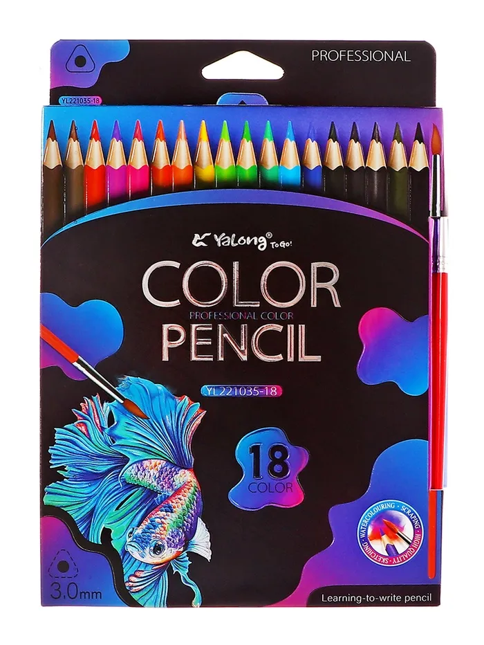 Карандаши акварельные 18 цветов, в картонной коробке, треугольные, дерево, с кистью, Рыбка 1055329 — Характеристики