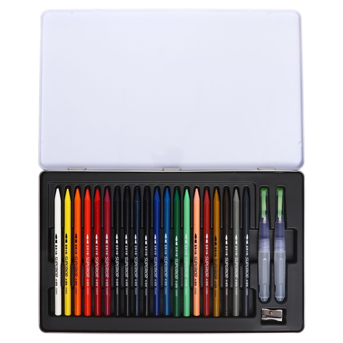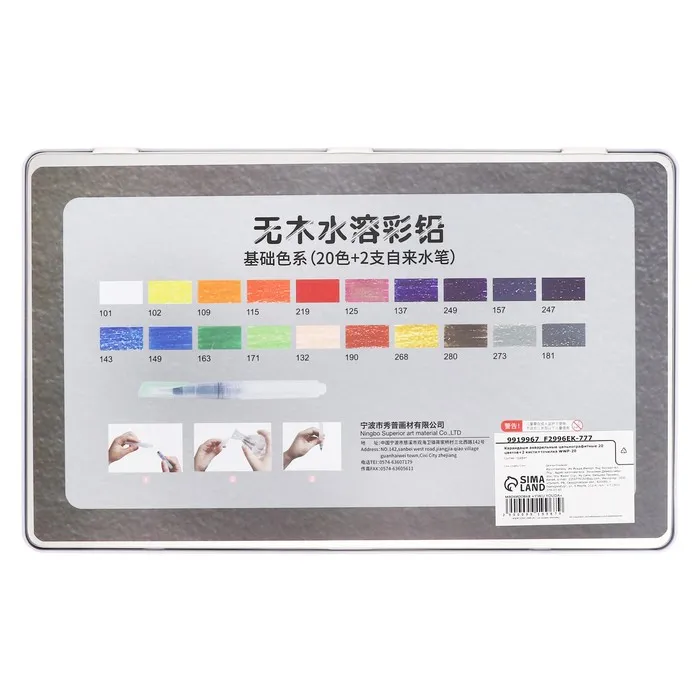 Карандаши акварельные, цельнографитные, 20 цветов+2 кисти+точилка, в металлической коробке WWP-20 — Характеристики