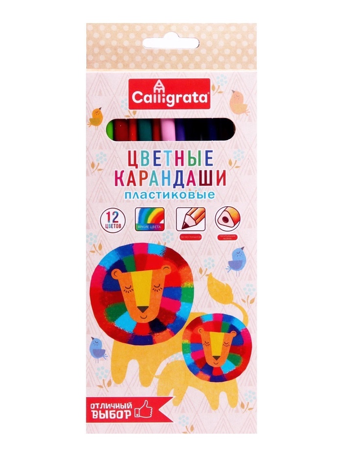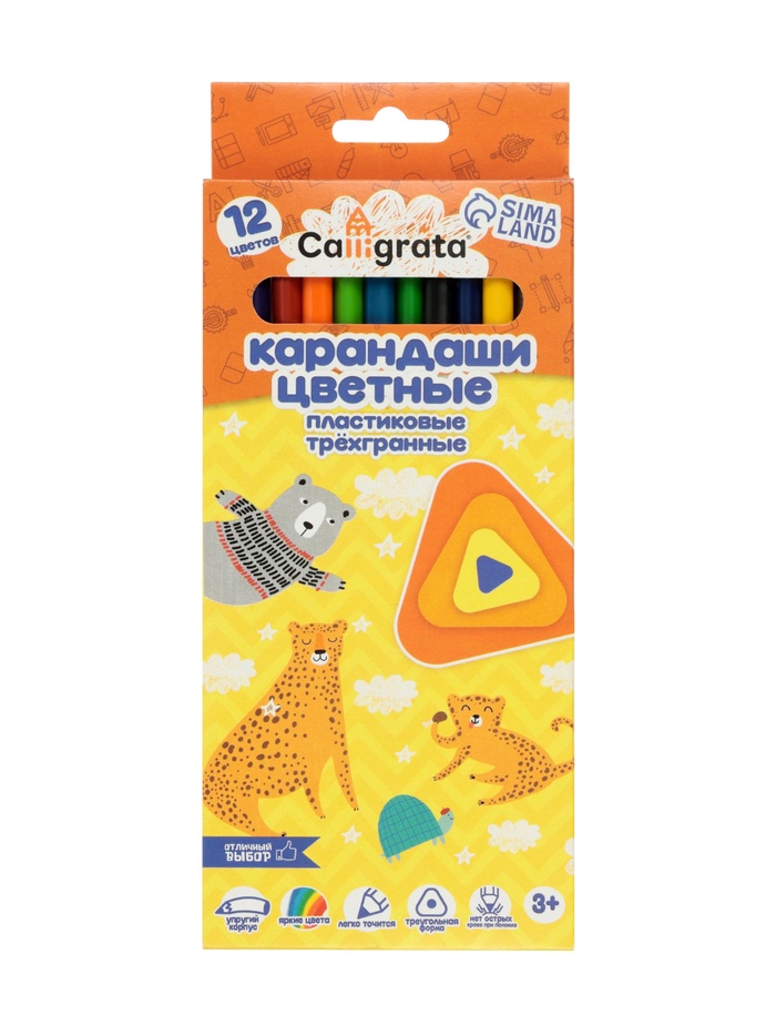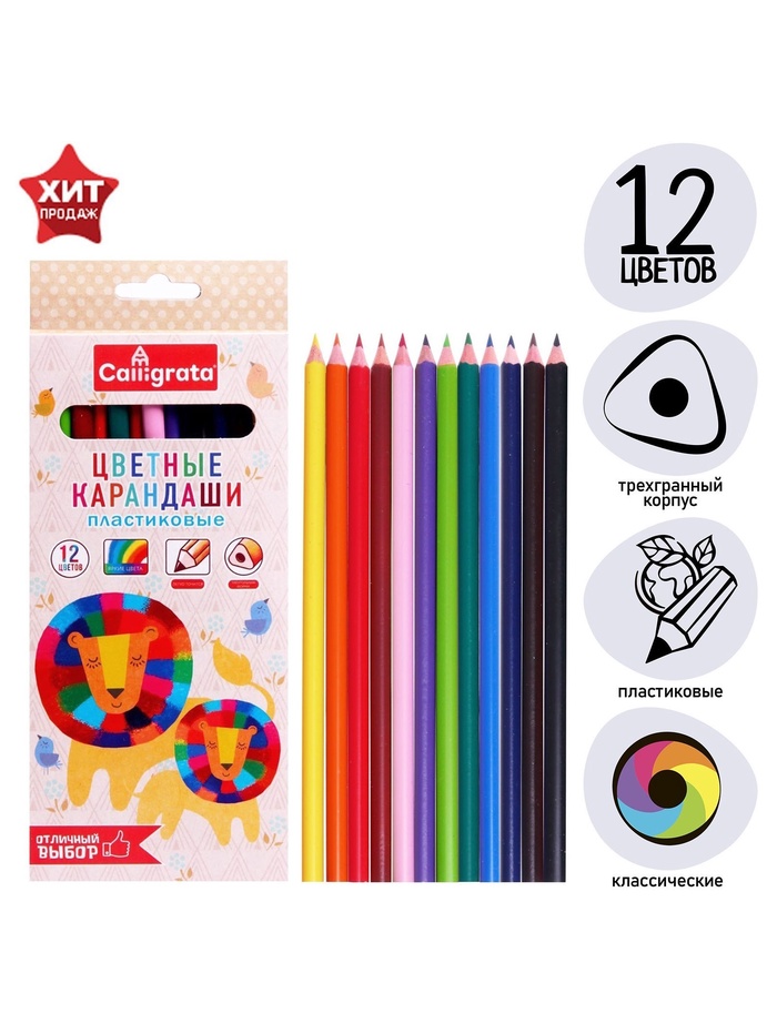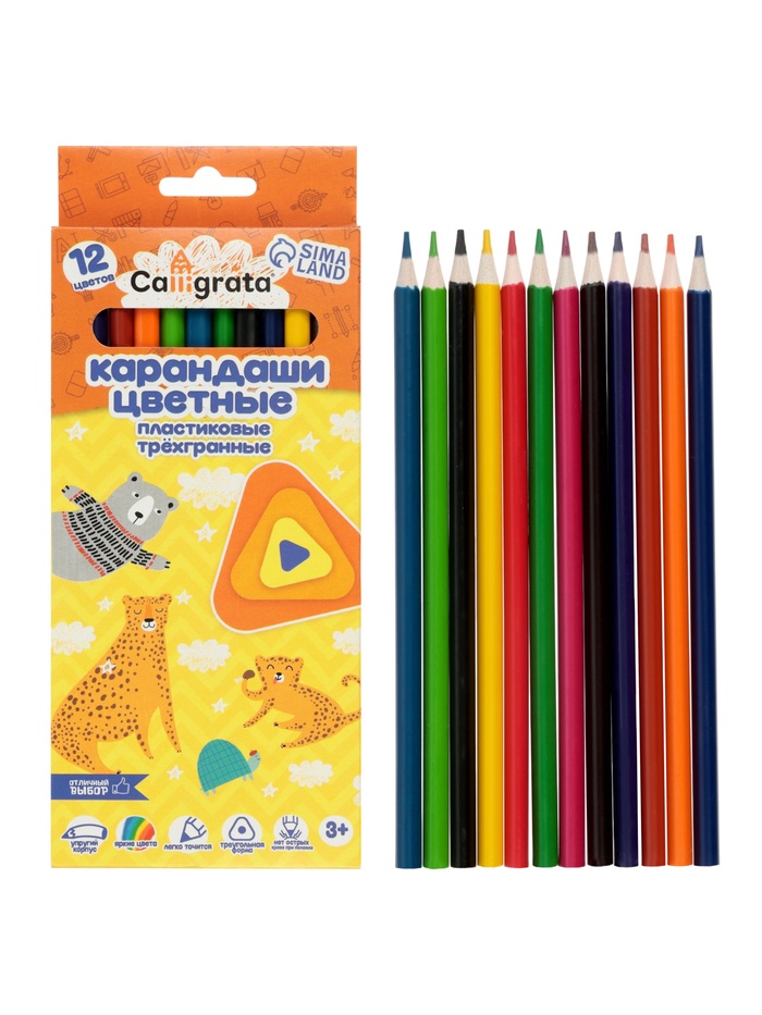 Карандаши Calligrata, 12 цветов, трехгранные, пластиковые, эконом — Характеристики