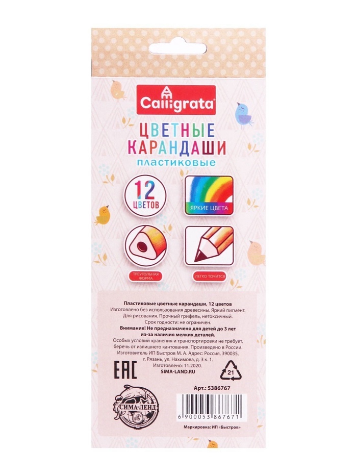 - Цветные карандаши Calligrata способствуют развитию творческого мышления, мелкой моторики рук, цветового восприятия, фантазии и воображения ребенка.