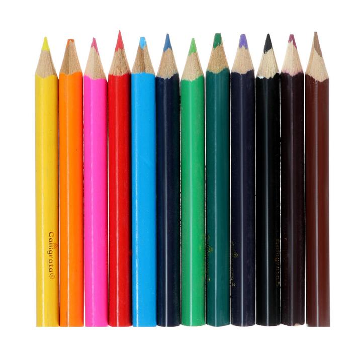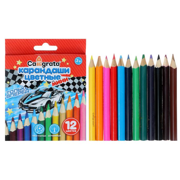 Карандаши Calligrata «Машинка», 12 цветов, МИНИ, корпус деревянный, треугольный