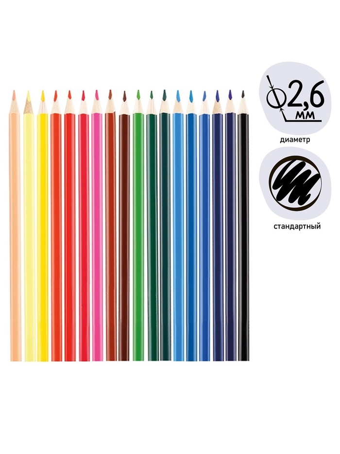 Карандаши Calligrata, цветные, 18 цветов, эконом, трёхгранные, пластиковые — Характеристики