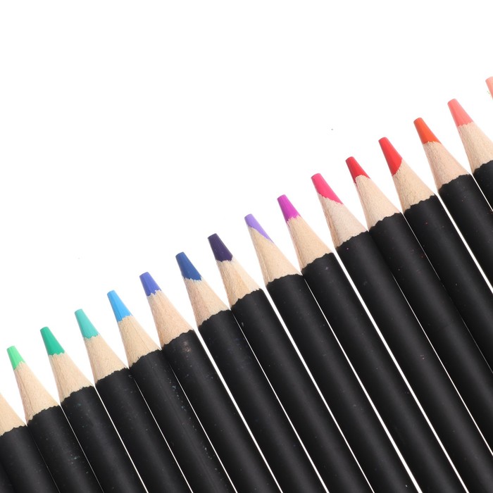 Набор состоит из 24 цветов. Круглая форма сечения и матовый корпус позволяют удобно держать карандаш в руке. Они изготовлены из древесины ценных пород. Высокосортная древесина и качество исполнения гарантируют легкую заточку. Благодаря высококачественному грифелю диаметром 3,3 мм рисунок ляжет на бумагу густо сплошной четкой линией. Все карандаши заточены и поставляются в картонной упаковке с европодвесом.